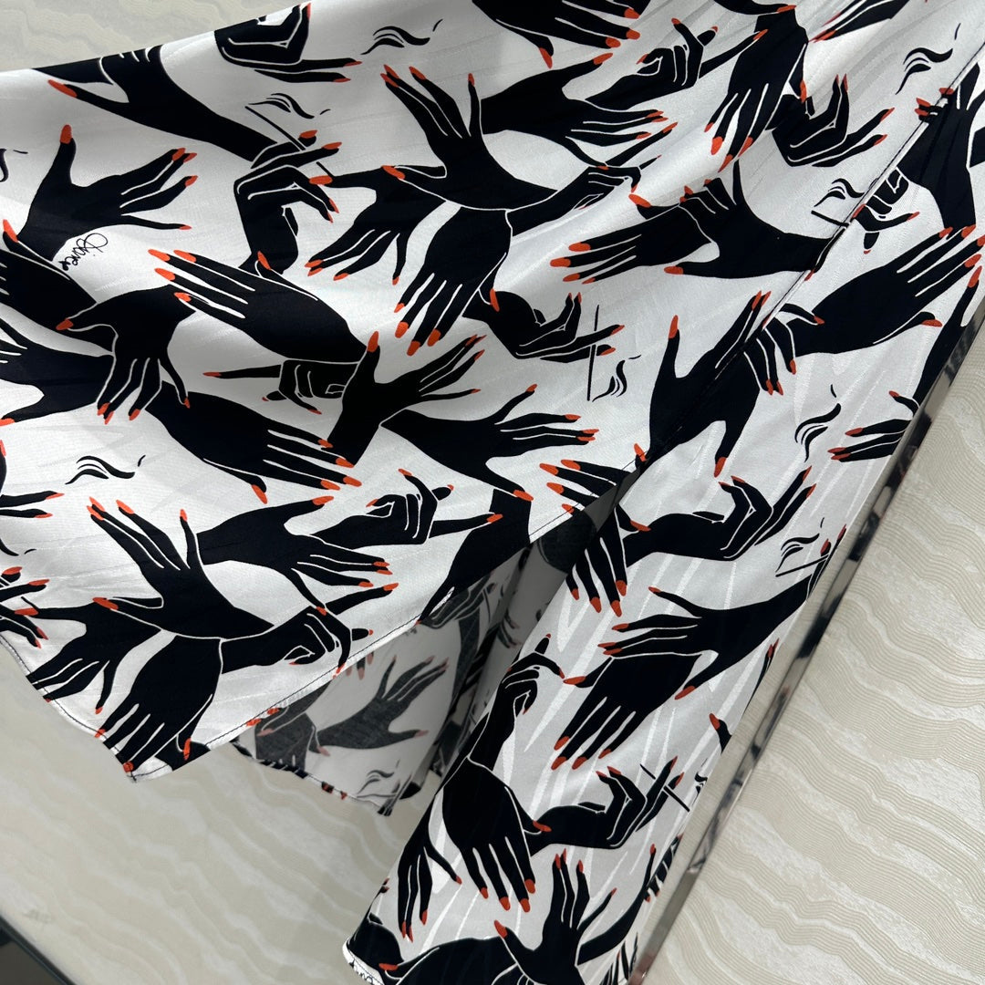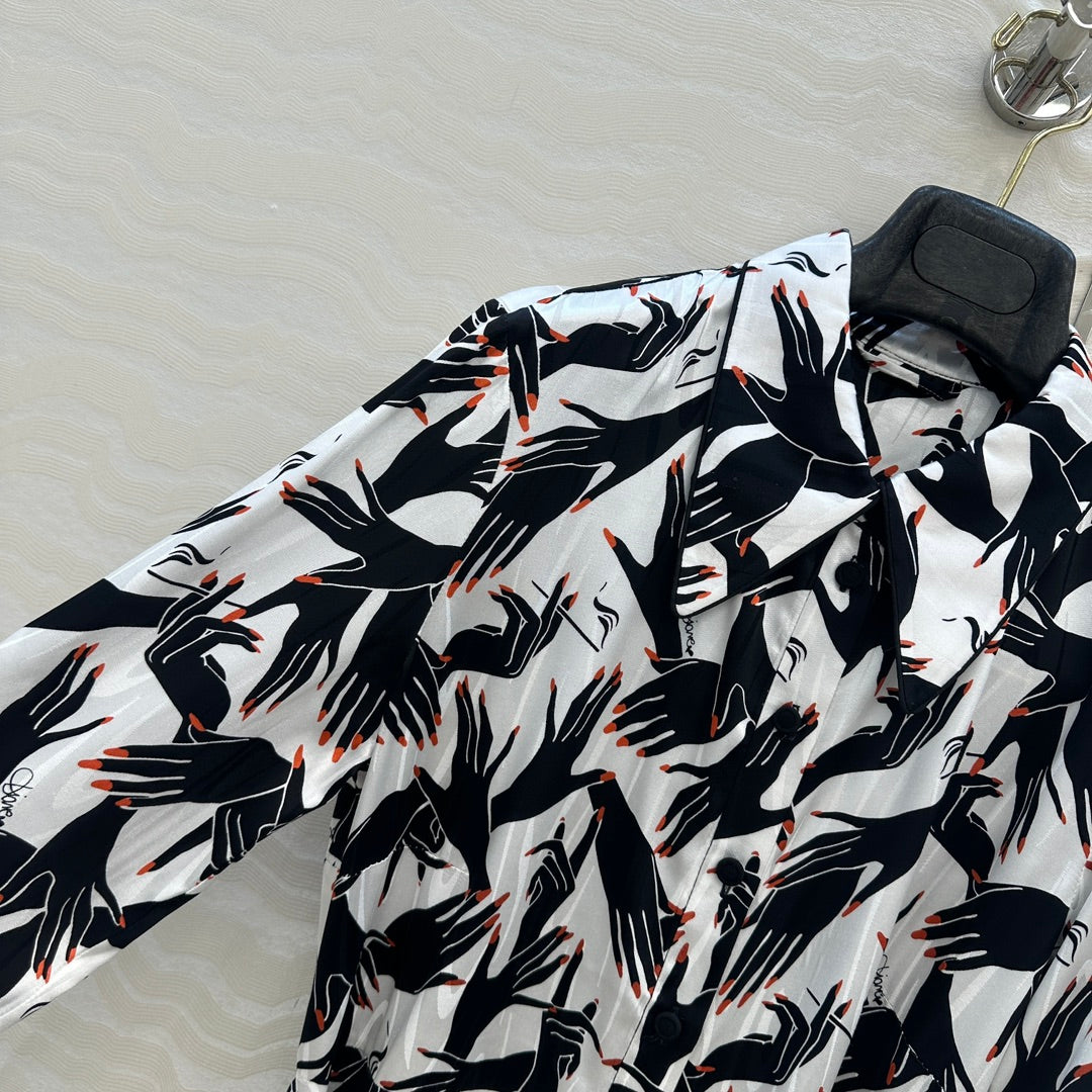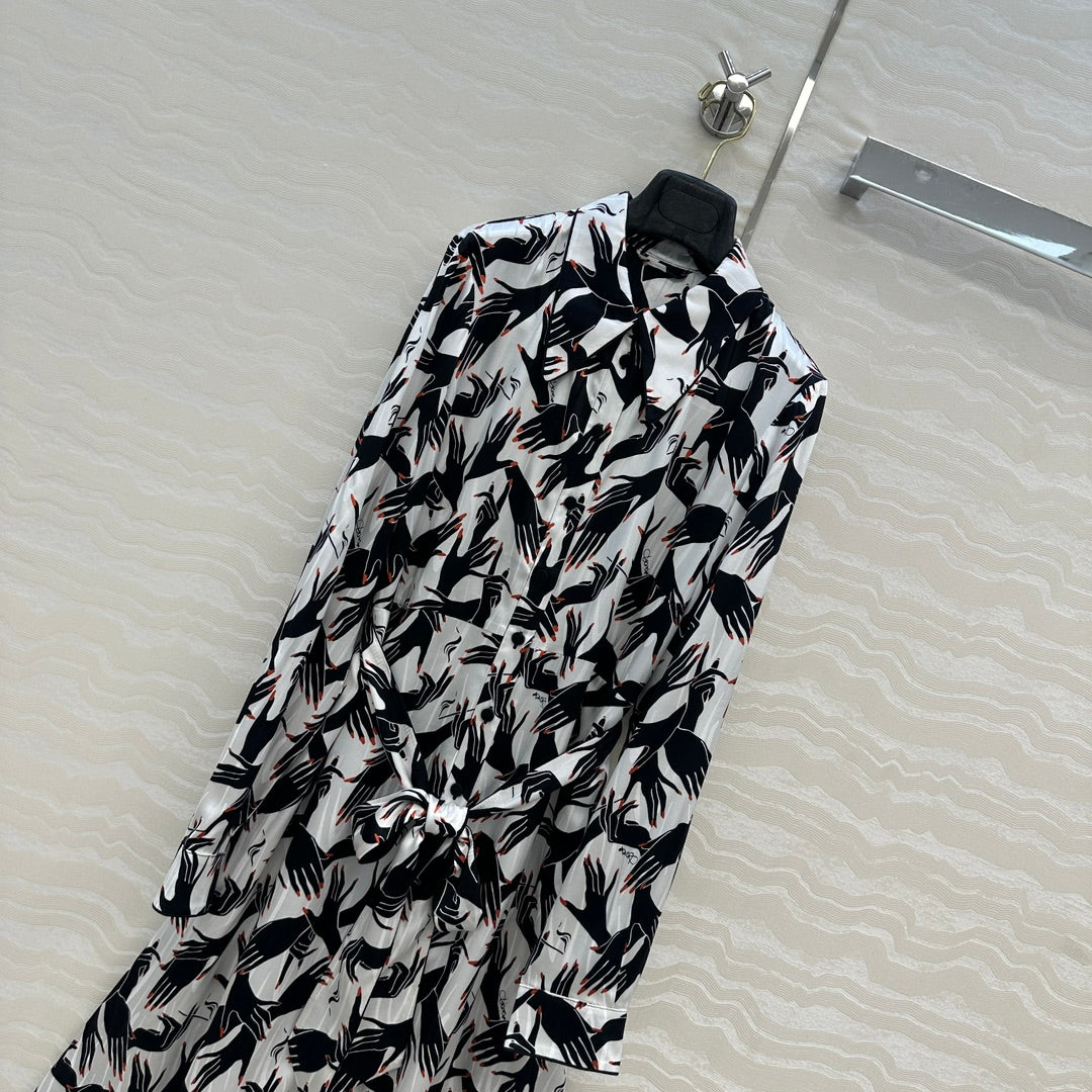 DVF WHITE AND BLACK PRINTED SILK SHIRT DRESS
