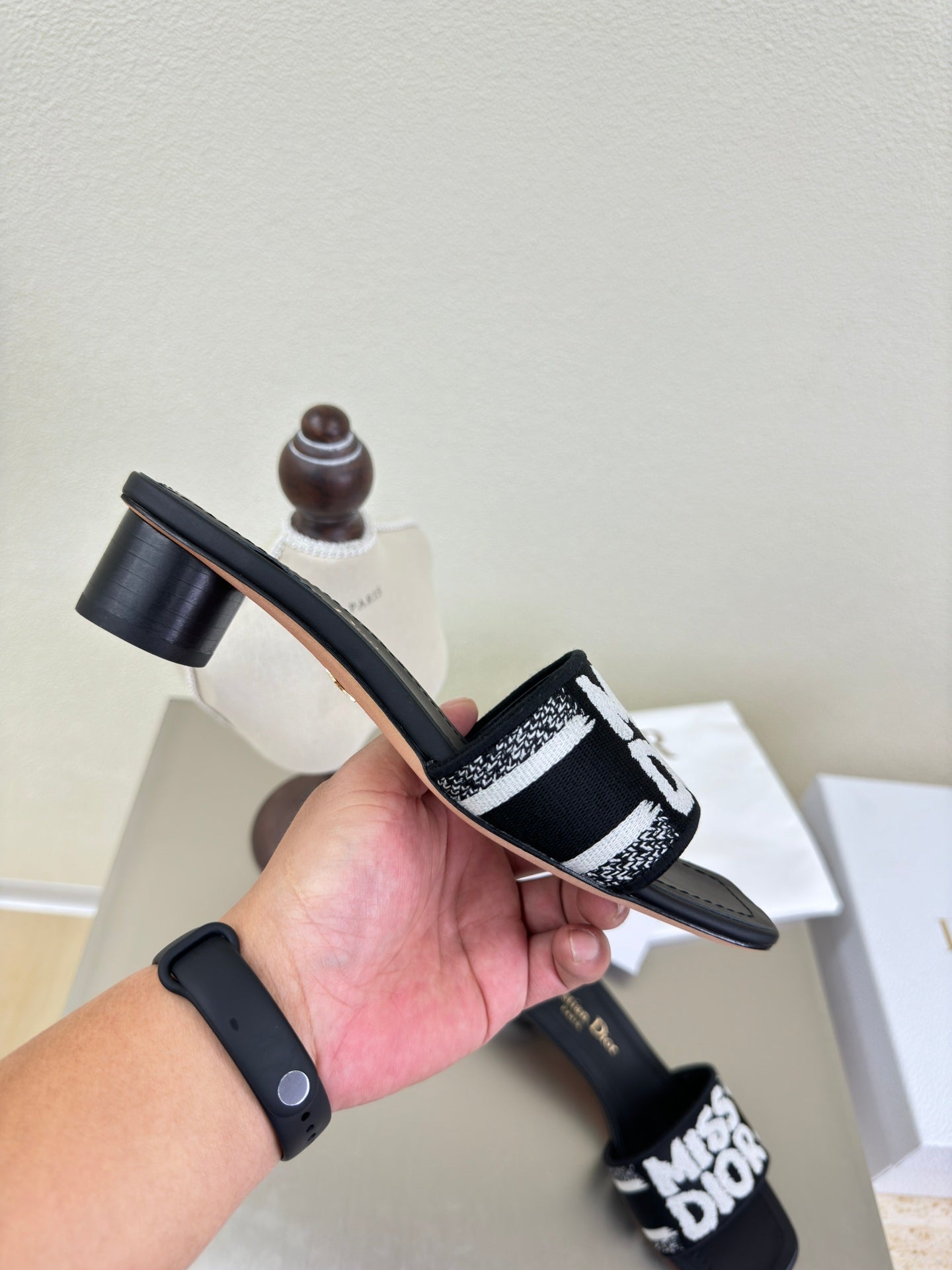 DWAY HEELED SLIDE EMBROIDERED COTTON AND BLACK MISS DIOR ALLOVER MOTIF 35 MM