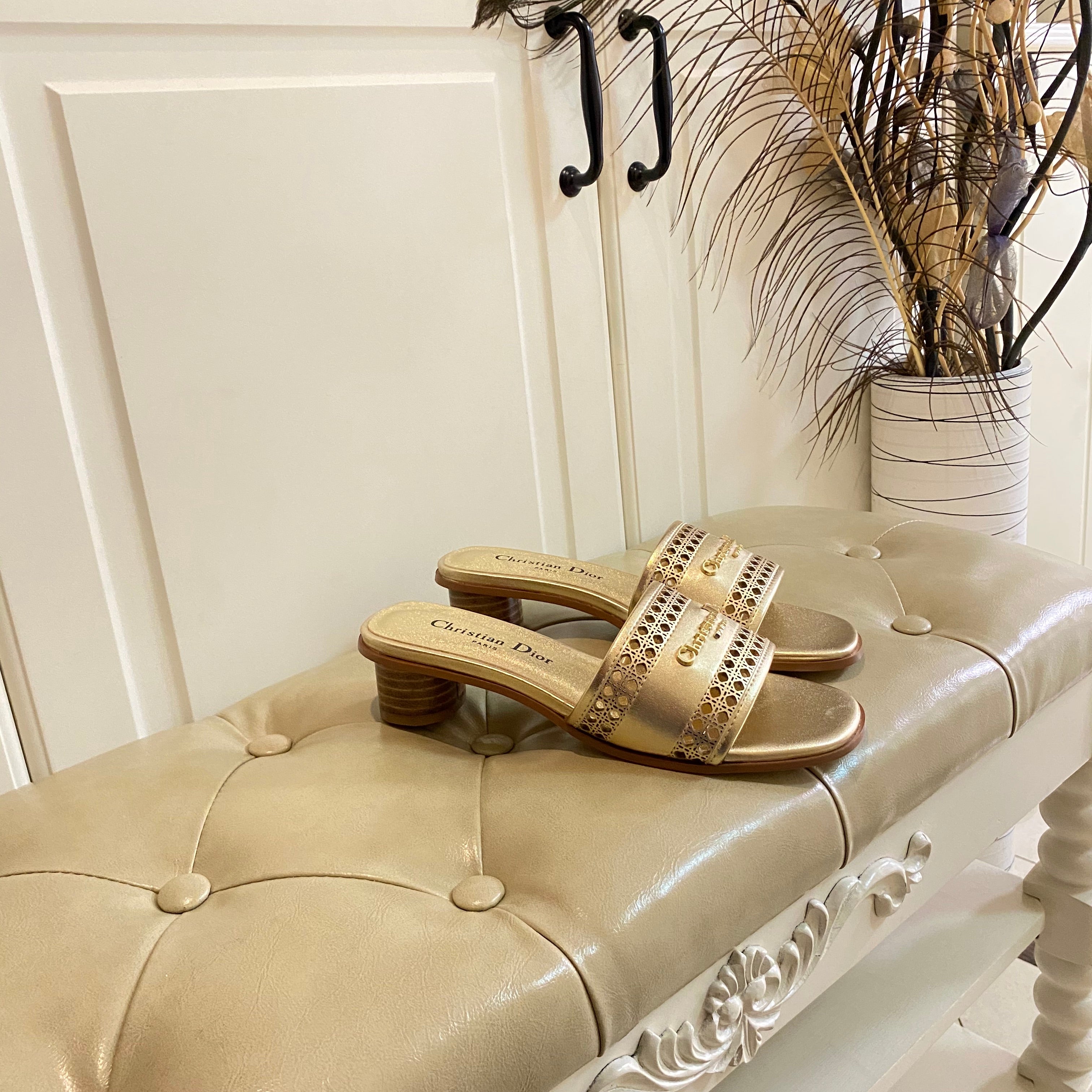DWAY HEELED SLIDE IN GOLD CALFSKIN WITH GOLD LOGO