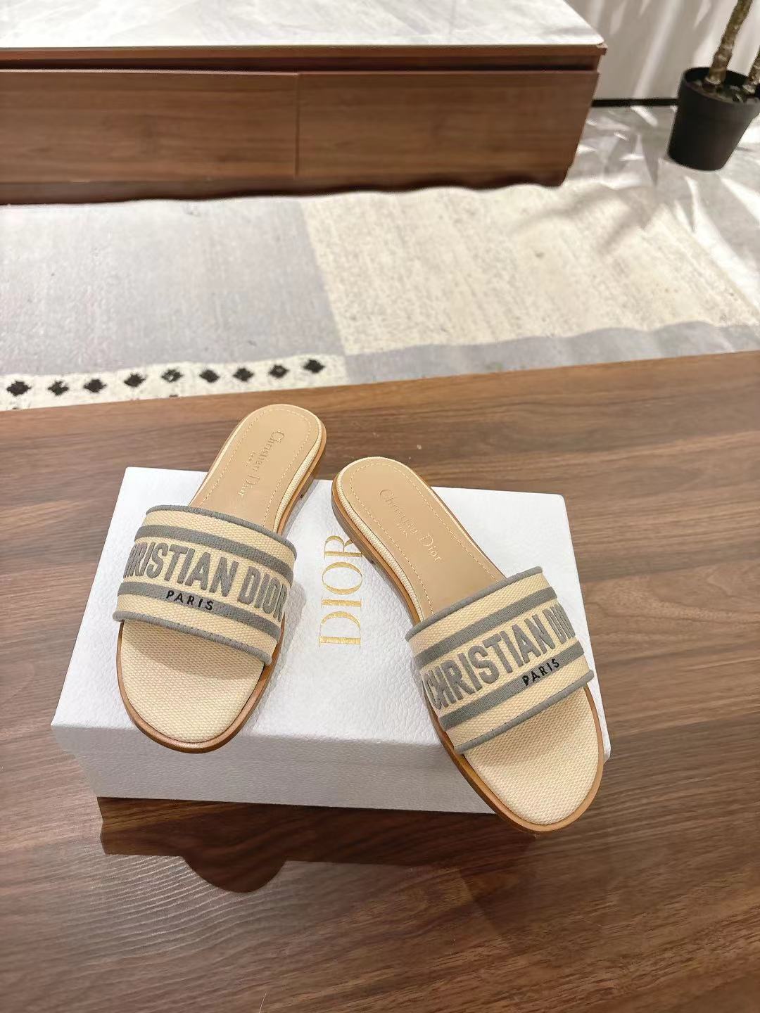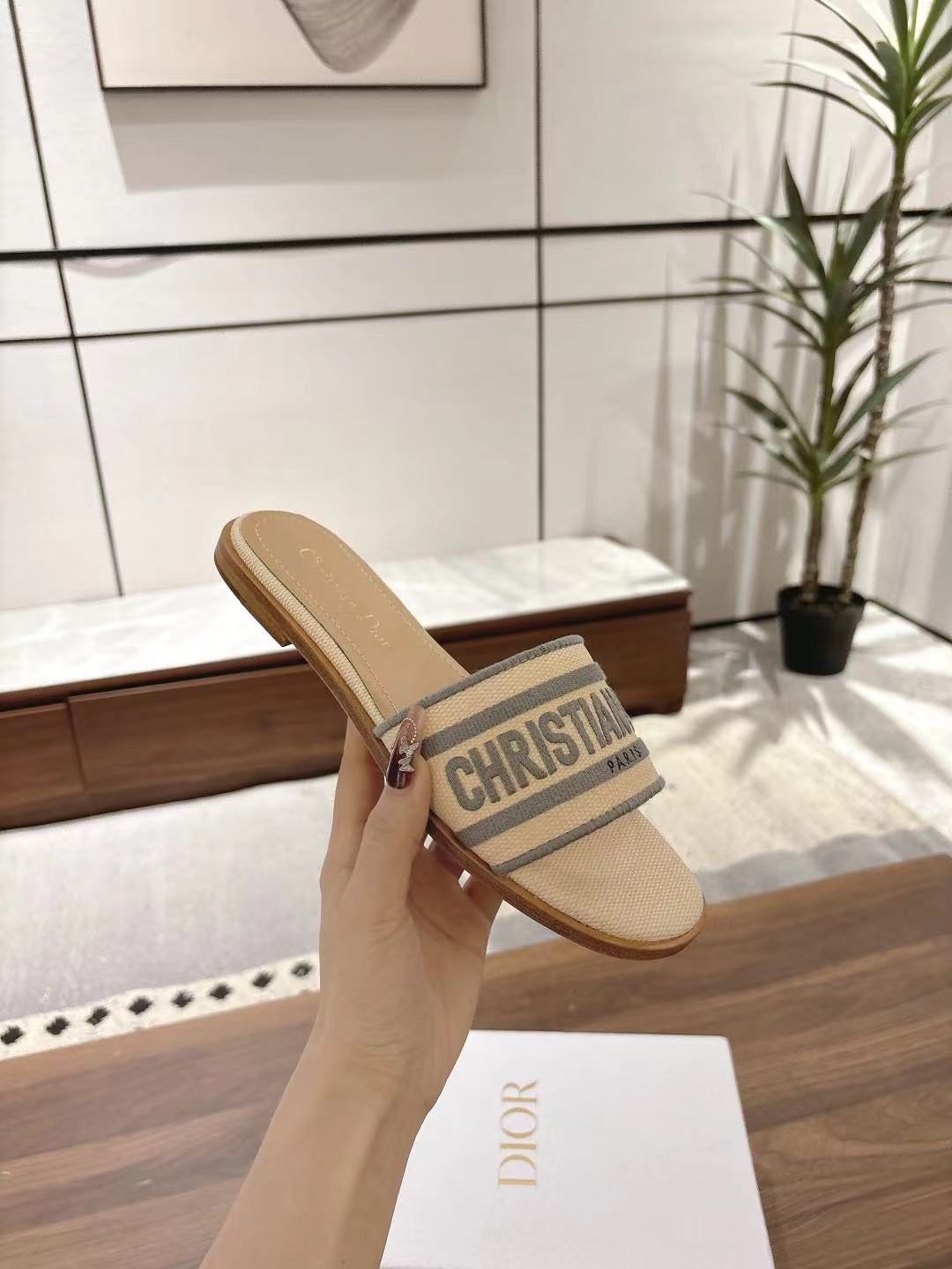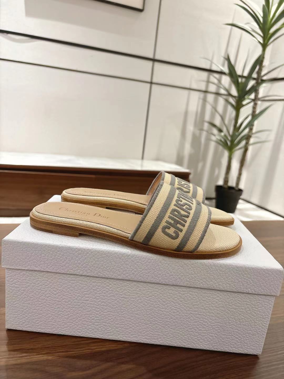 DWAY SLIDES IN BEIGE AND GRAY TECHNICAL FABRIC