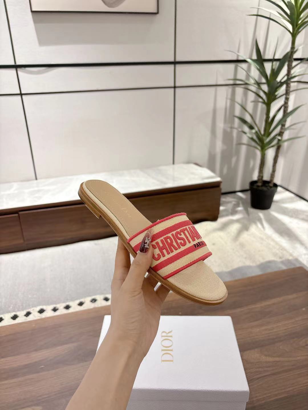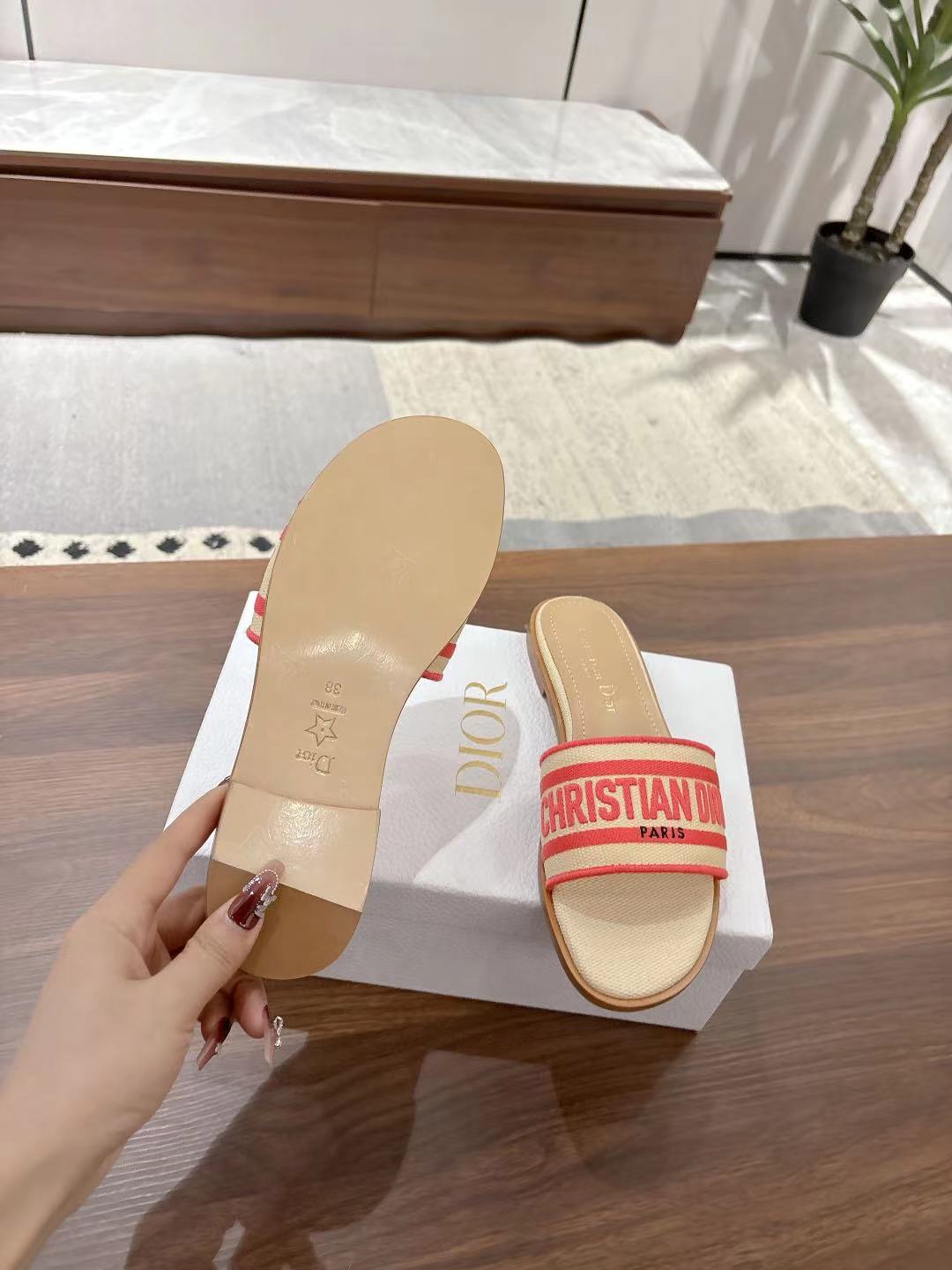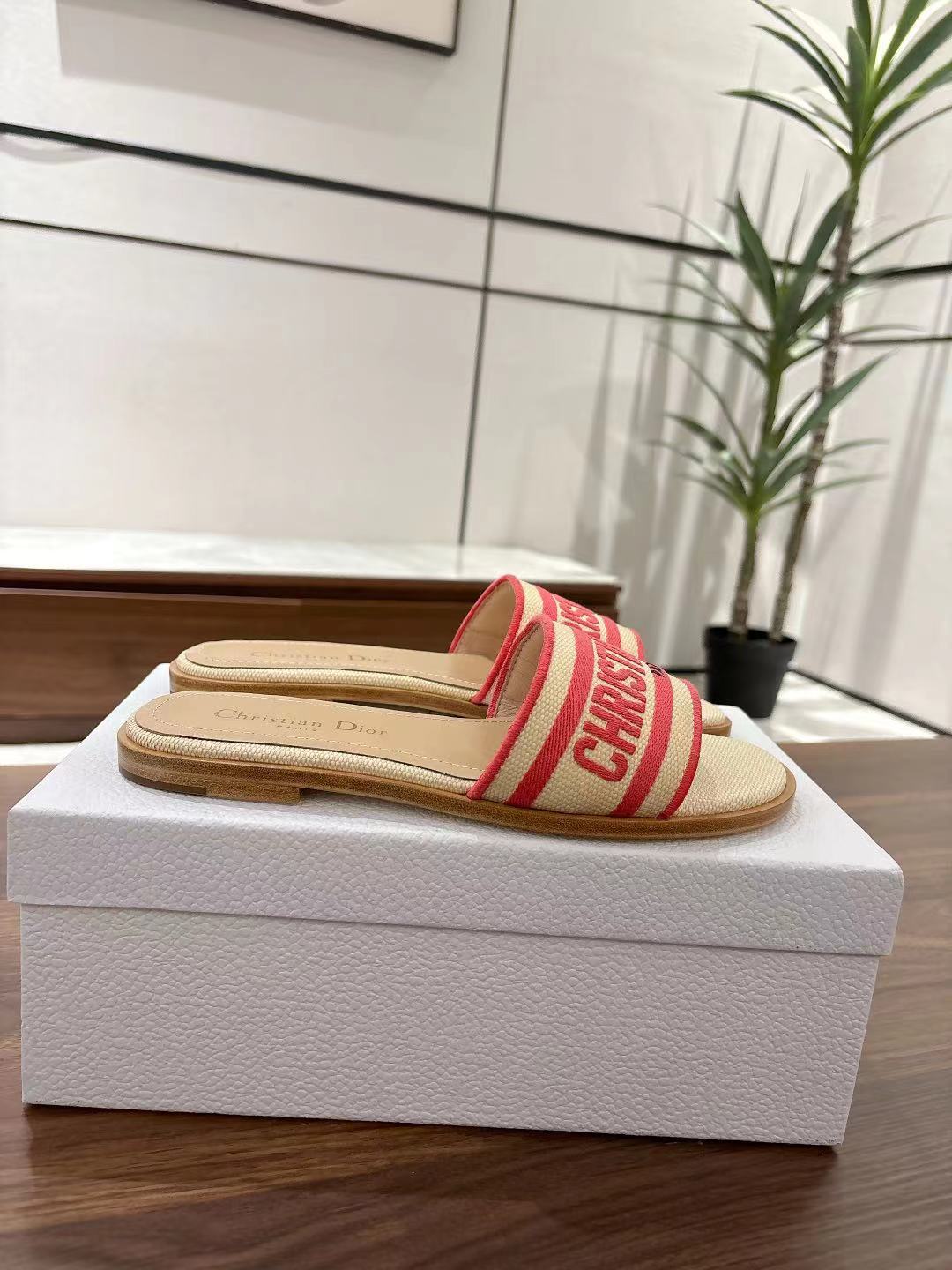 DWAY SLIDES IN BEIGE AND RED TECHNICAL FABRIC