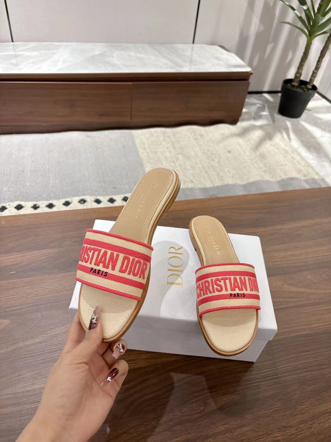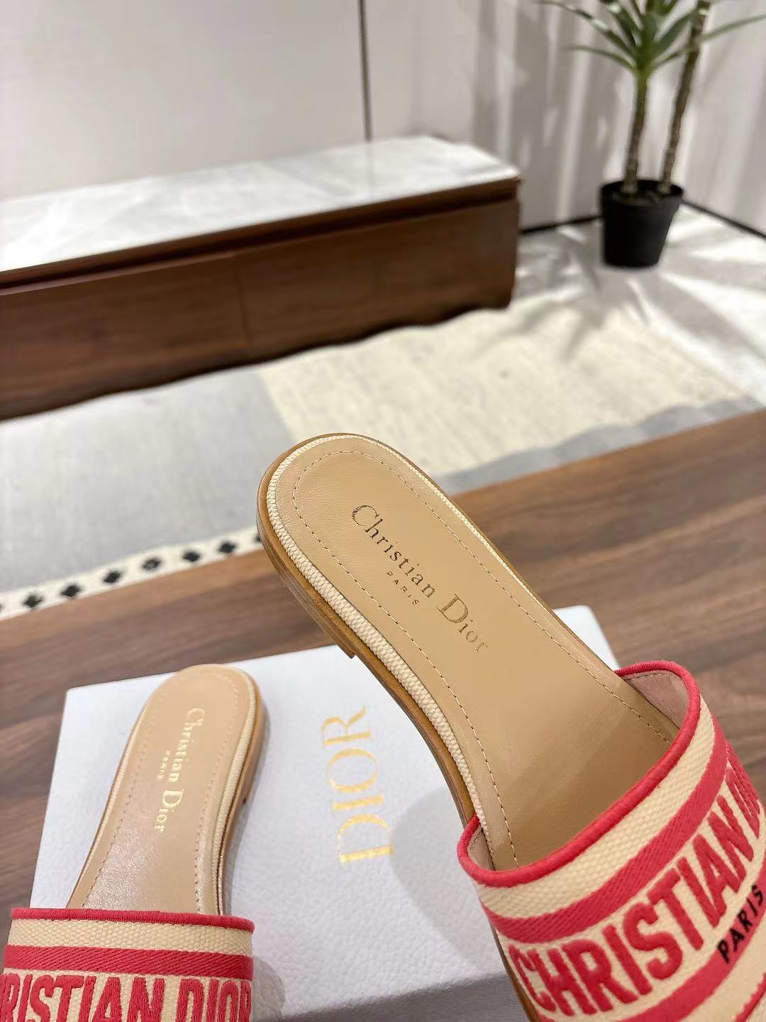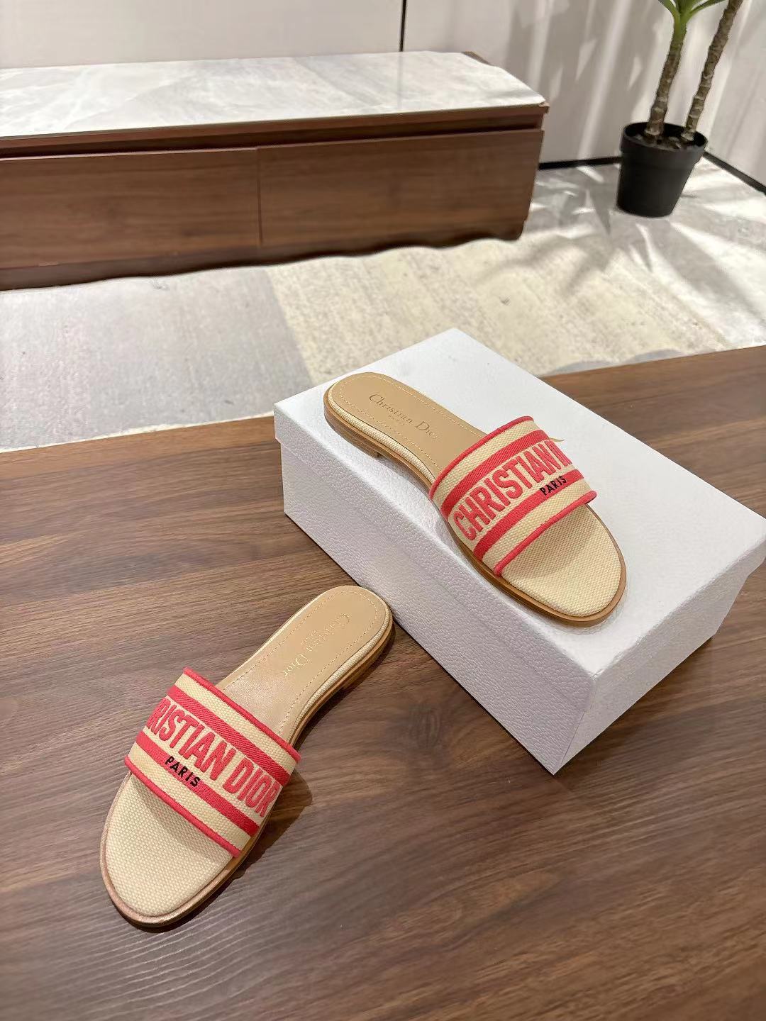 DWAY SLIDES IN BEIGE AND RED TECHNICAL FABRIC