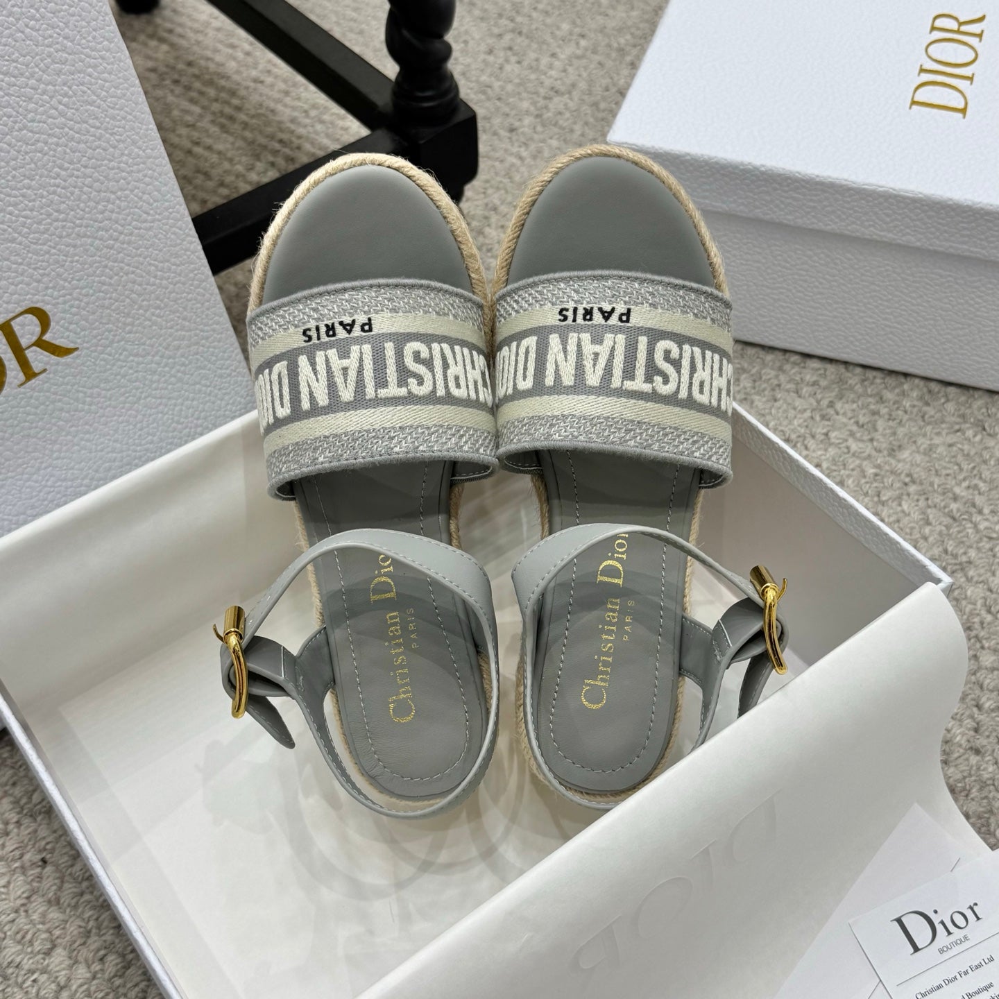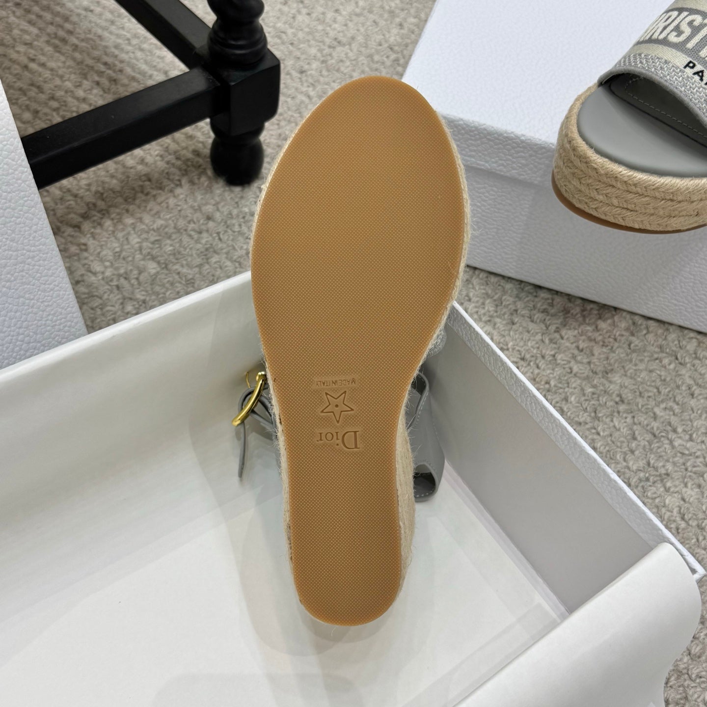 DWAY WEDGE SANDAL 25S 95MM IN GRAY EMBROIDERED COTTON RAFFIA SOLE