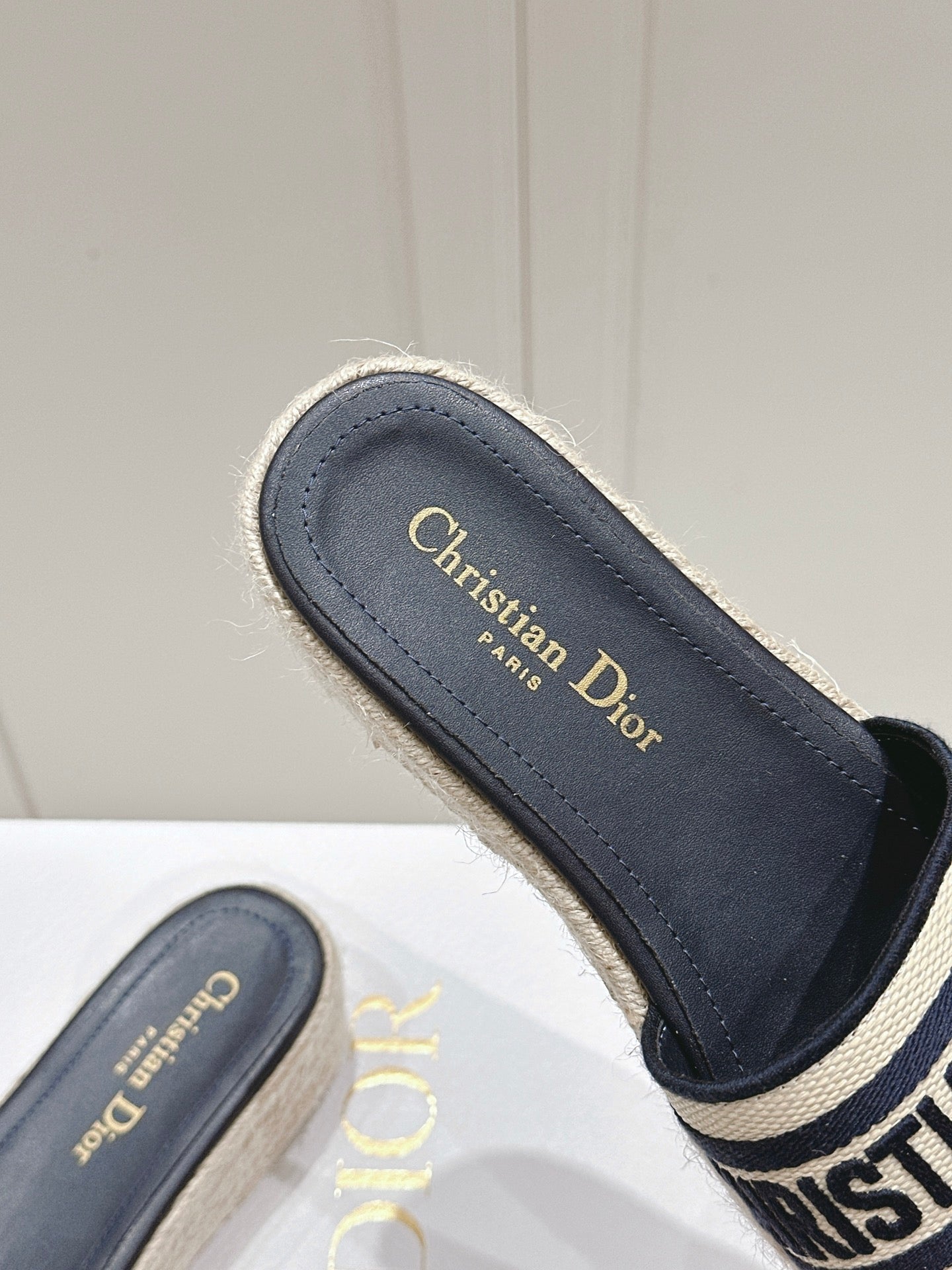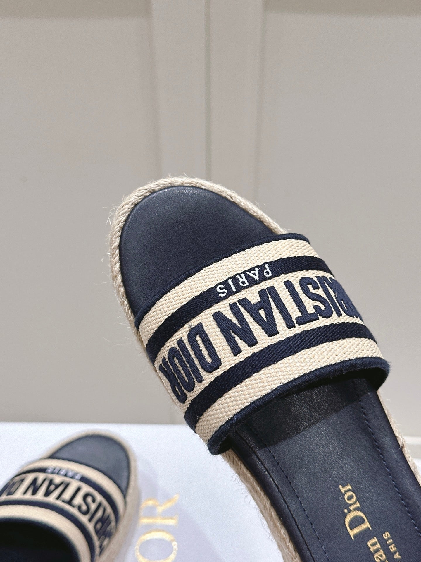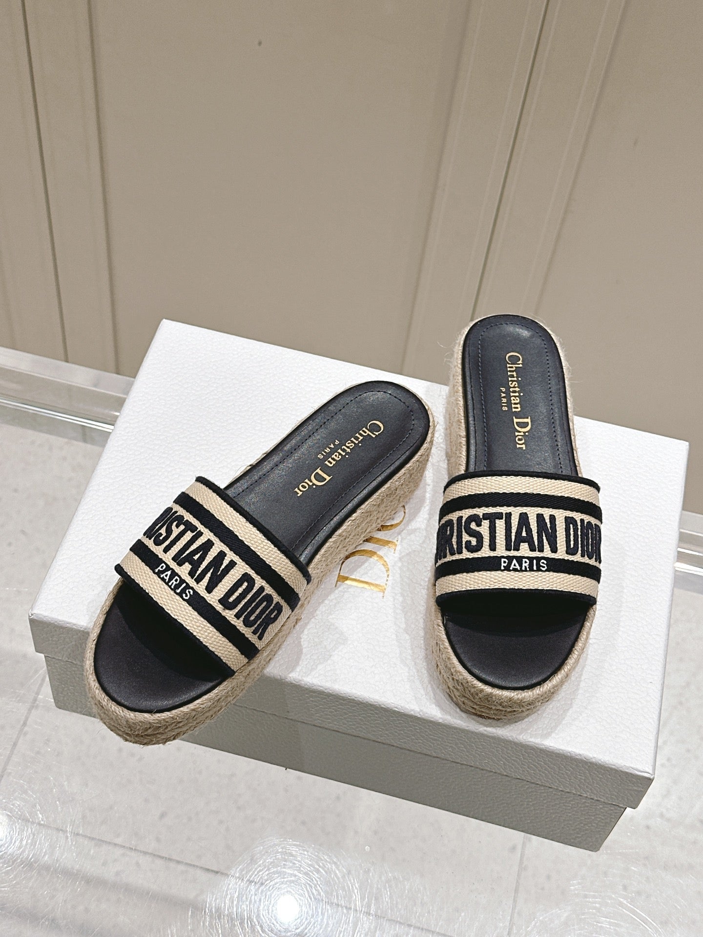 DWAY WEDGE SLIDES 45MM IN BLACK AND BEIGE FABRIC RAFFIA SOLE