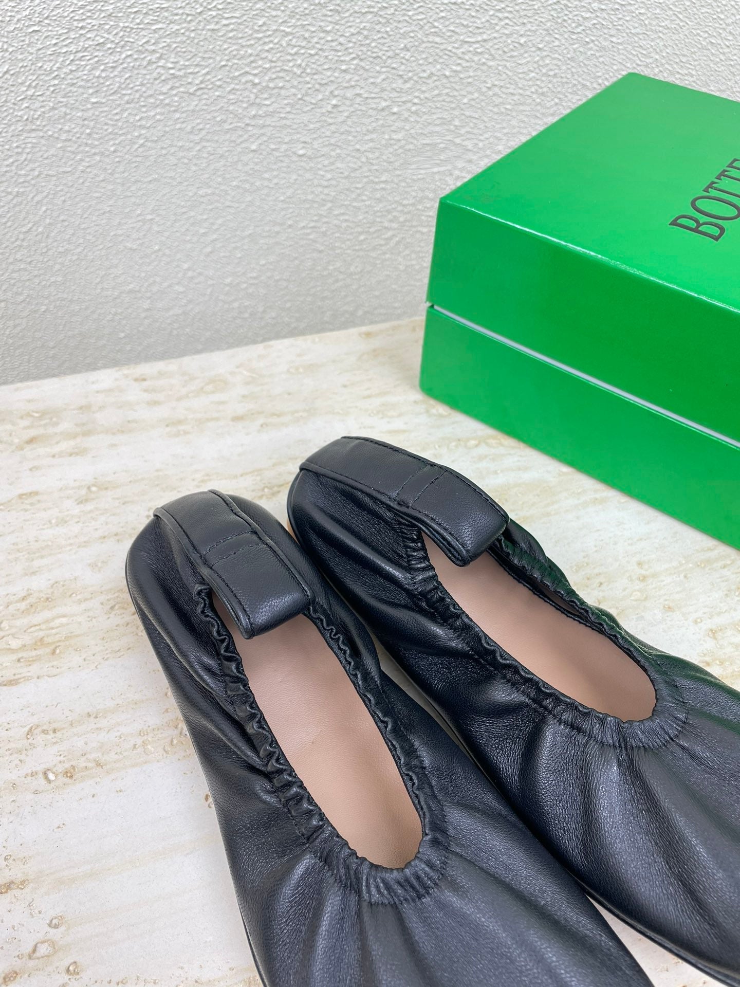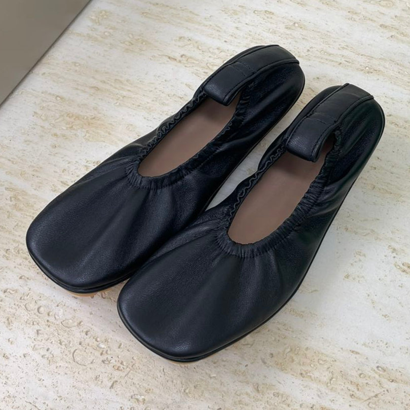ELASTIC BALLERINA FLATS IN BLACK LAMBSKIN