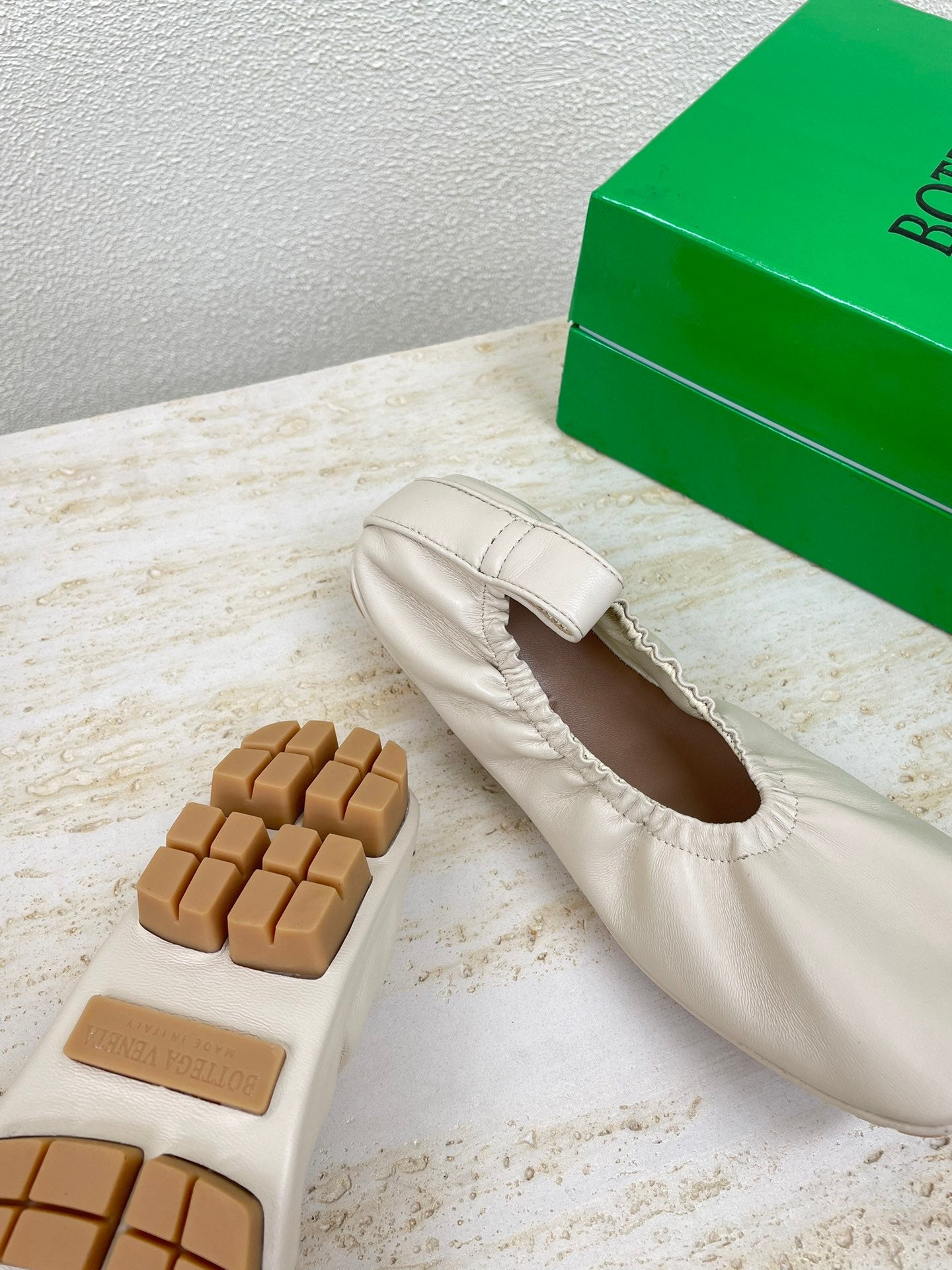ELASTIC BALLERINA FLATS IN WHITE CREAM LAMBSKIN