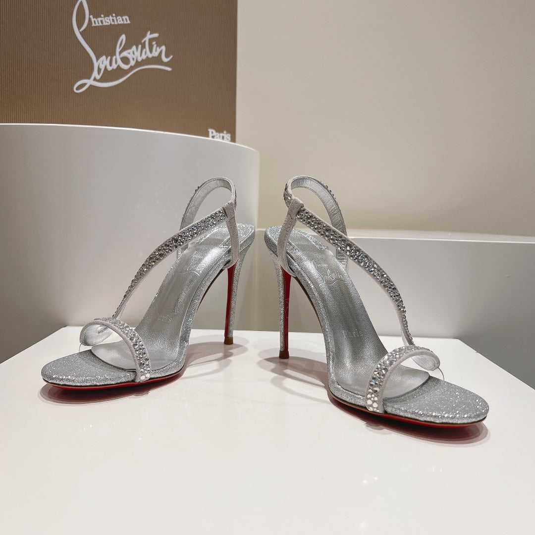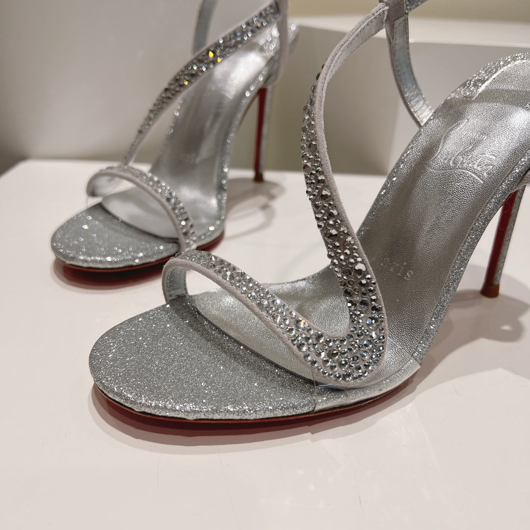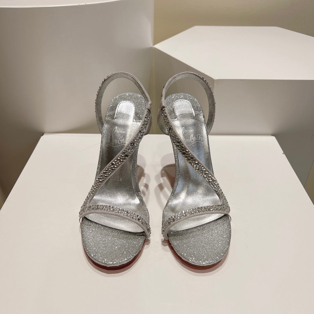 EMBELLISHED SANDAL 100MM IN SILVER MIX WHITE CALFSKIN