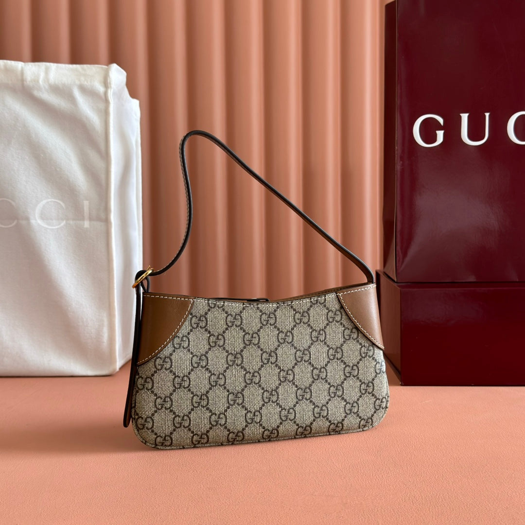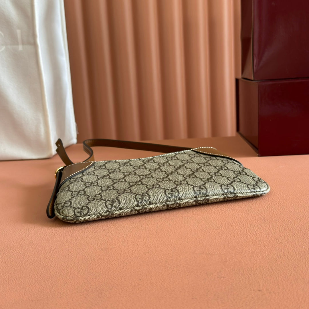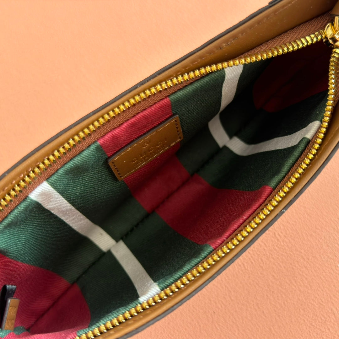 EMBLEM SMALL SHOULDER BAG 23 IN BEIGE AND BROWN GG COATED FABRIC BROWN CALFSKIN TRAP