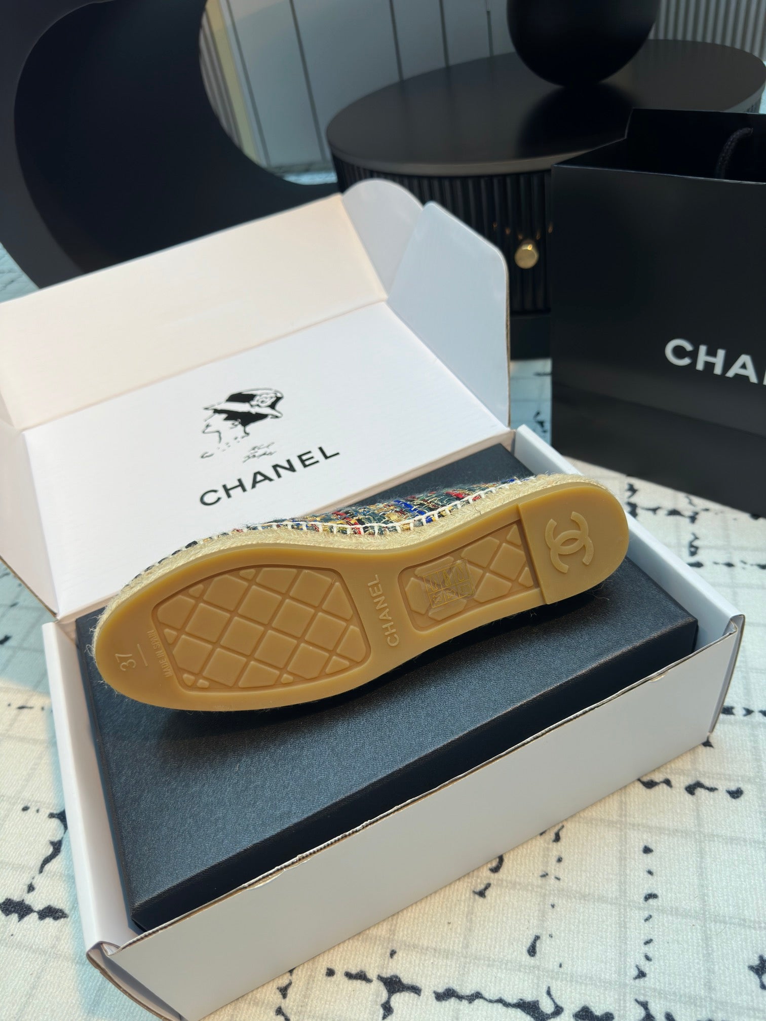 ESPADRILLES LOAFERS IN MULTICOLOR TWEED AND BLACK SATIN