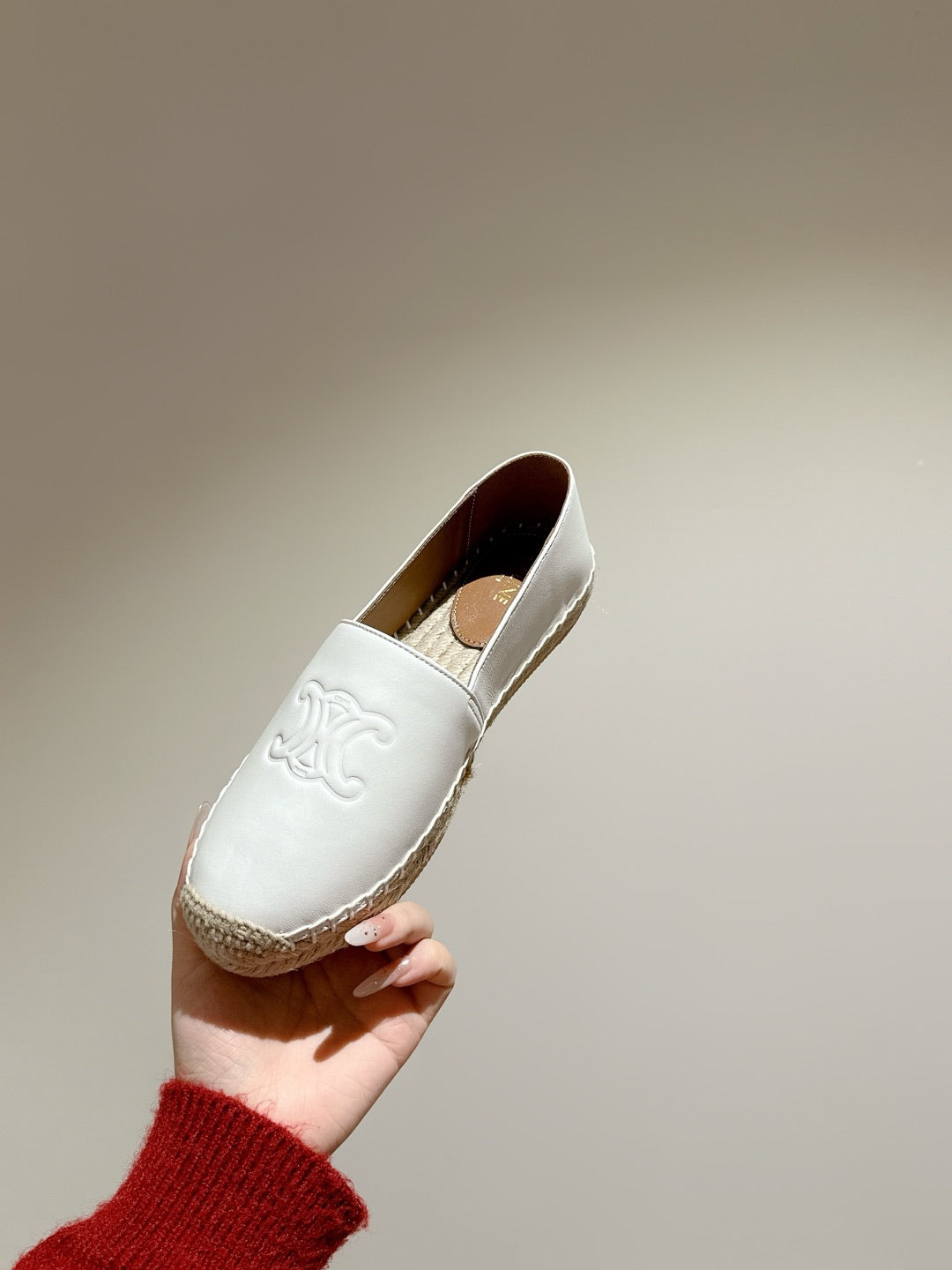 ESPADRILLES WHITE SHINY CALFSKIN EMBOSSED LOGO