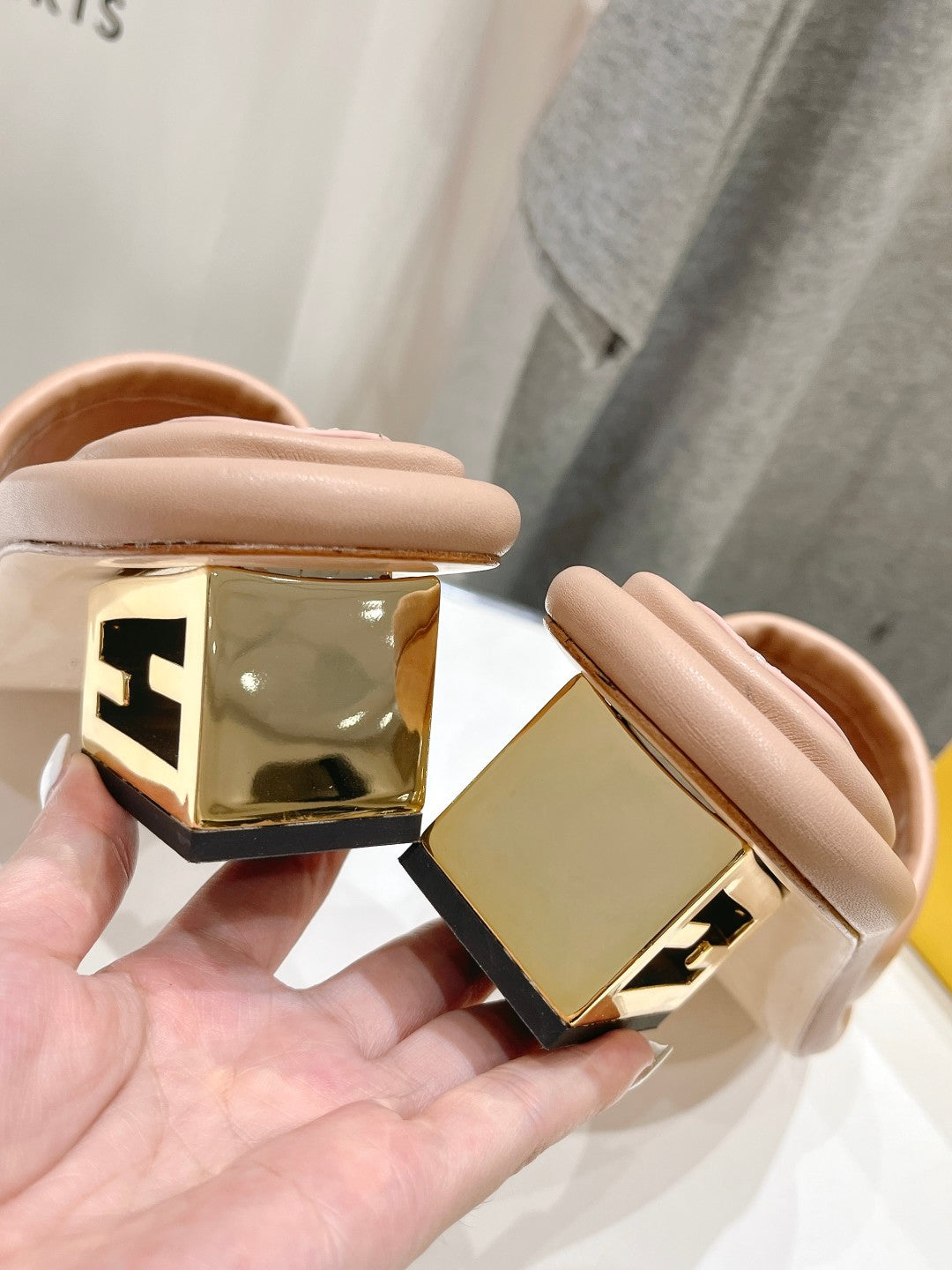 FENDI BAGUETTE MEDIUM-HEEL SANDALS 45 MM IN DESERT SAND CALFSKIN