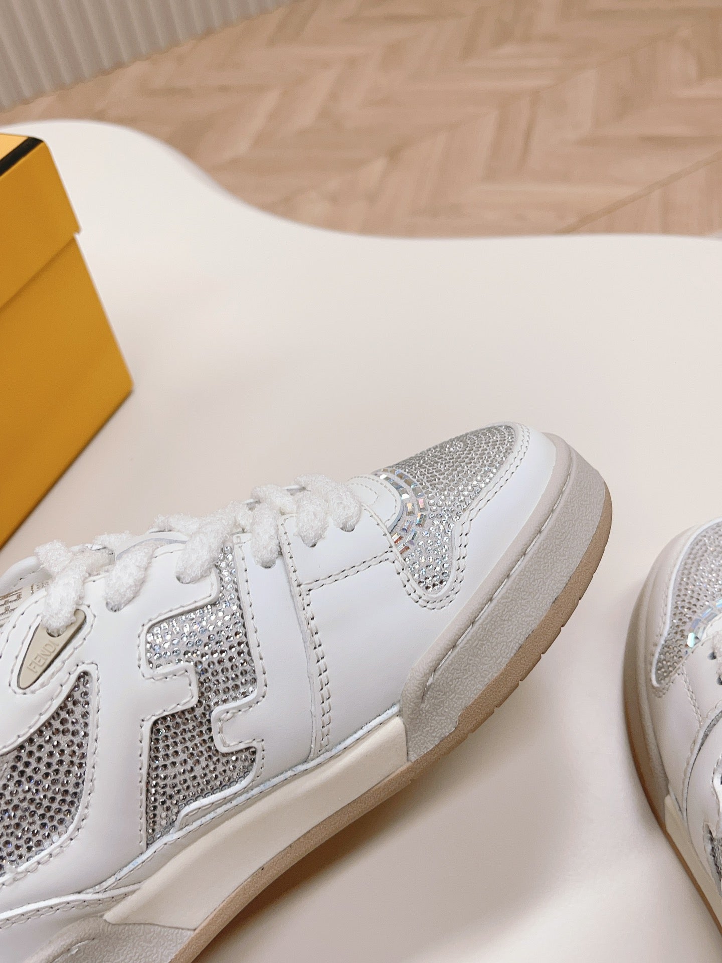 FENDI CASUAL SNEAKER IN WHITE CALFSKIN ATTACH RHINSTONES