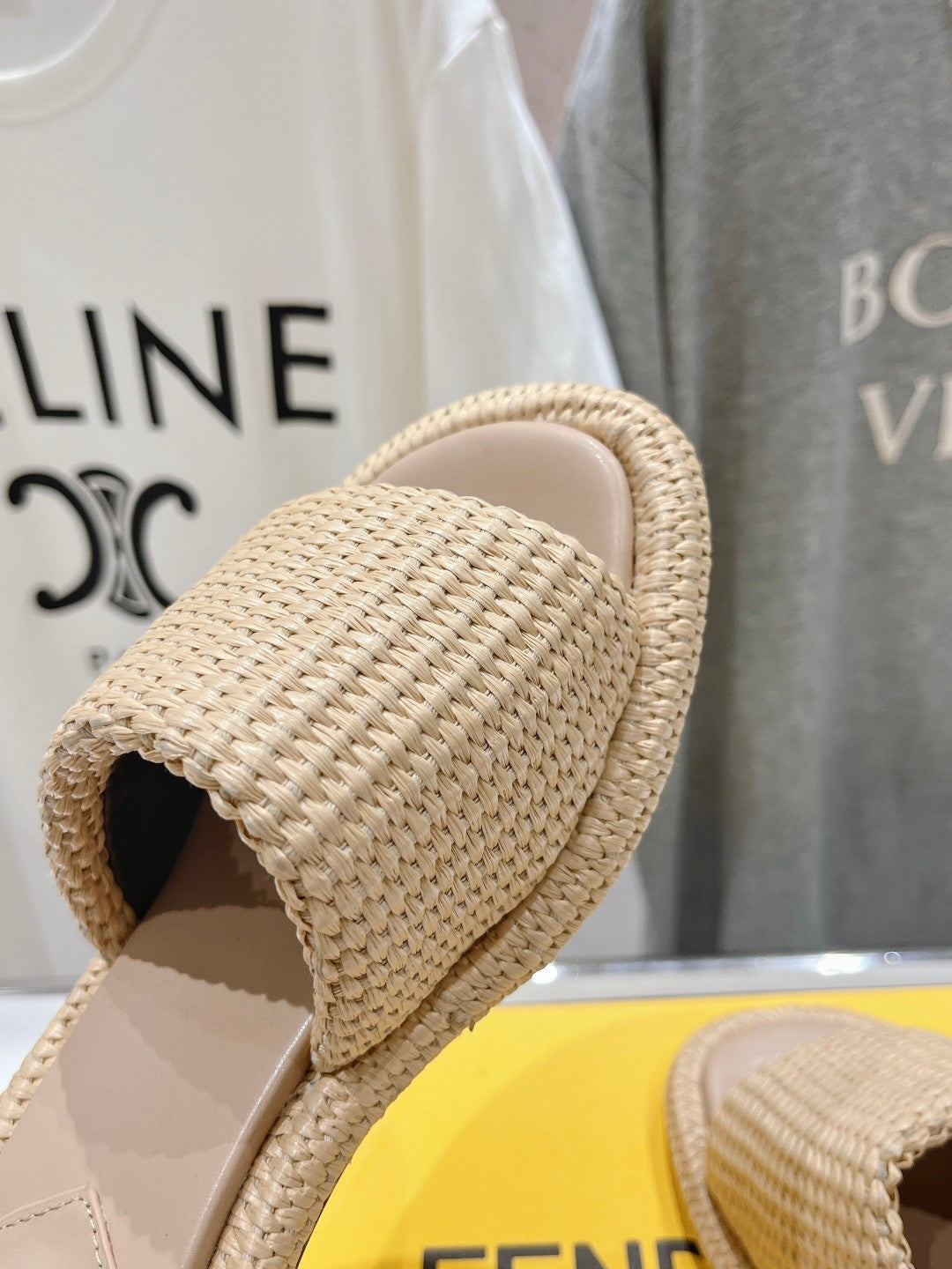 FENDI FFOLD MEDIUM-HEEL SANDALS 45 MM IN TUSCAN BEIGE COTTON FIBRE