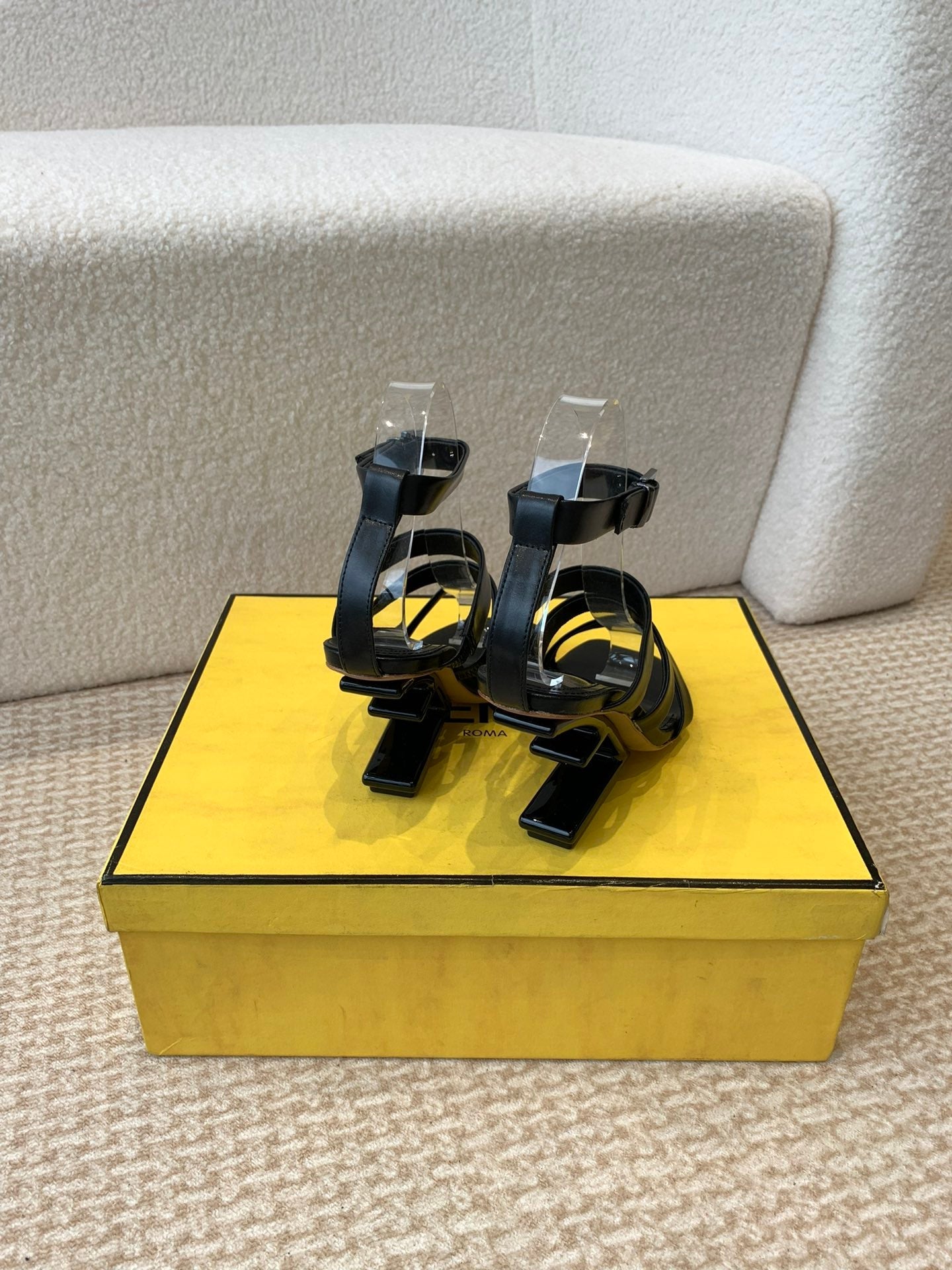 FENDI HIGH SANDAL 10 CM IN BLACK CALFSKIN