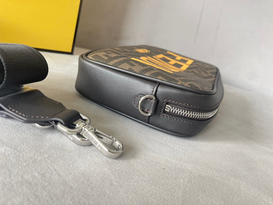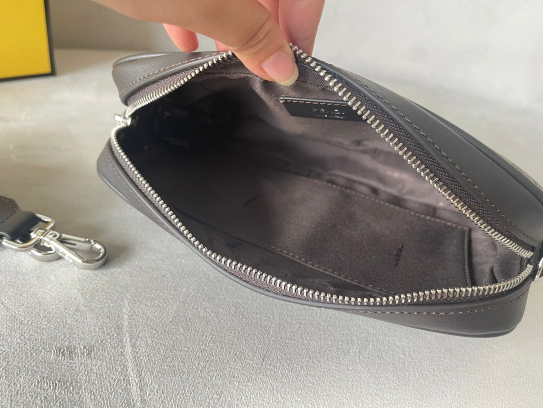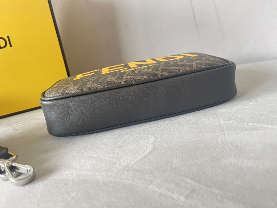 FENDI ROMA 22 CLUTCH BAG IN CHOCOLATE BROWN FF CALFSKIN SILVER HARDWARE WITH GOLDEN LOGO