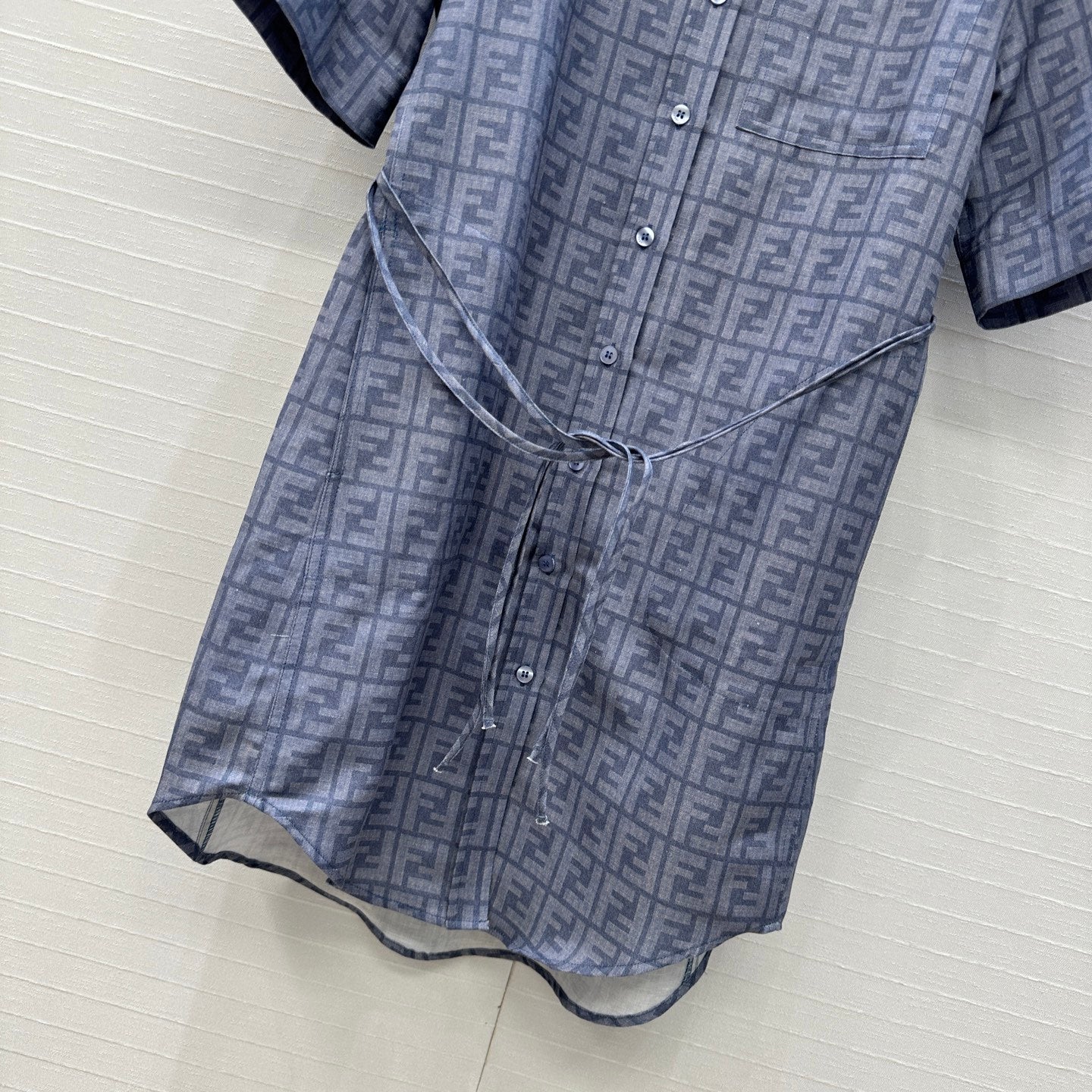 FENDI SHORT-SLEEVE SHIRT DRESS WITH DRAWSTRING WAIST 276178