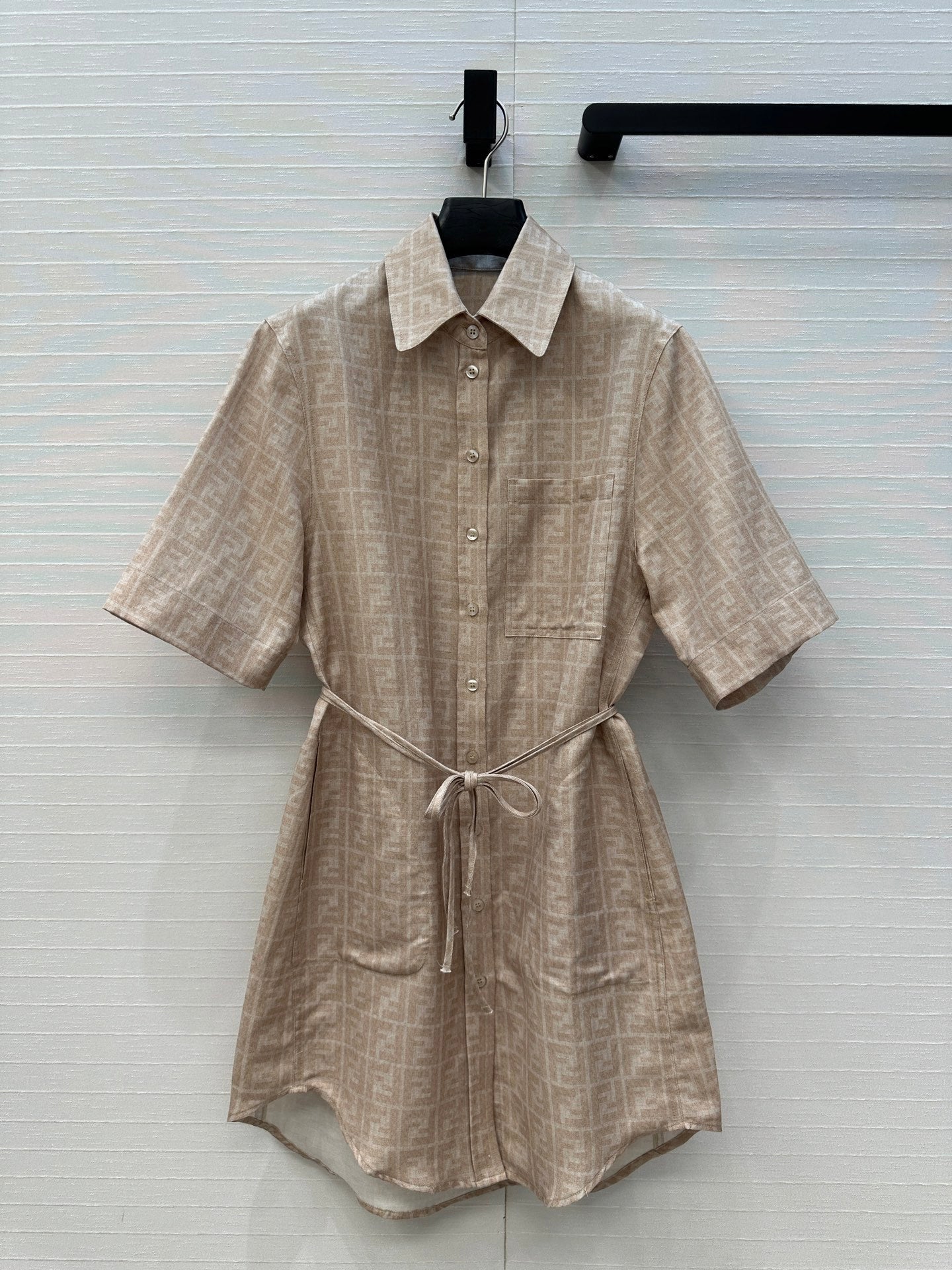 FENDI SHORT-SLEEVE SHIRT DRESS WITH DRAWSTRING WAIST 276180