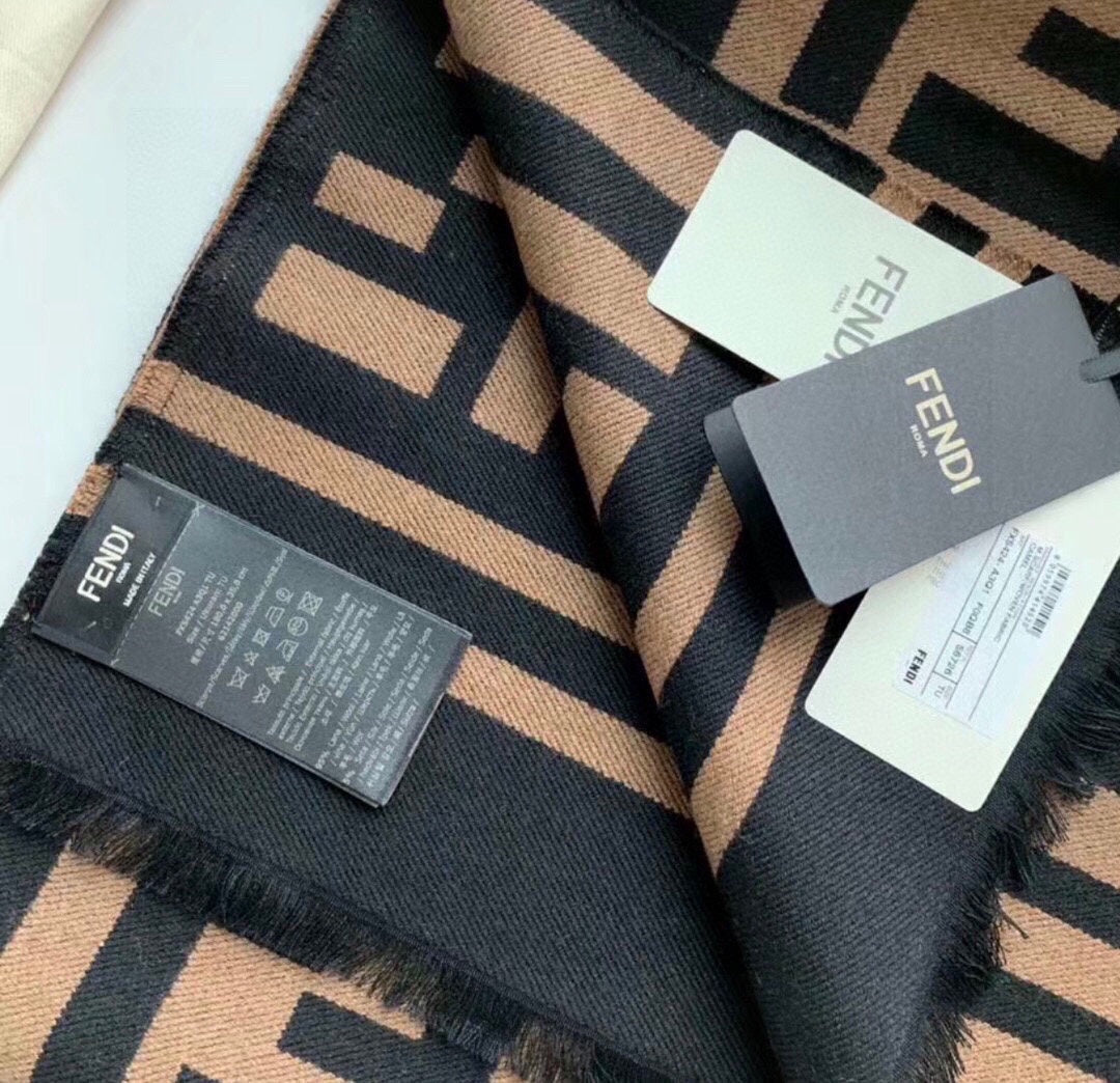 FF 180 CM SCARF IN CAMEL BROWN MIX BLACK CASHMERE AND WOOL