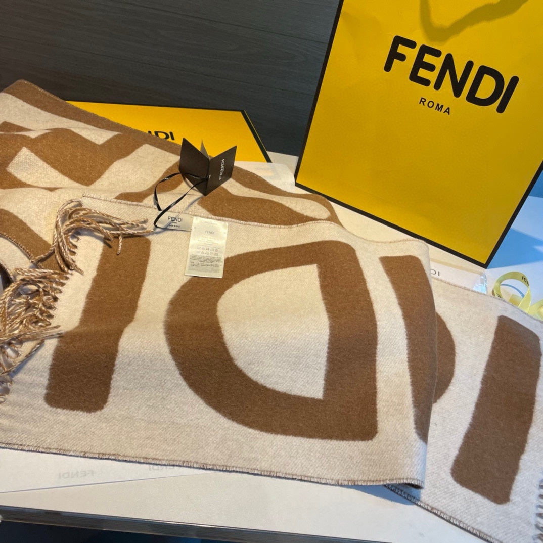 FF 185 CM SCARF IN CARAMEL BROWN MIX WHITE CASHMERE AND WOOL