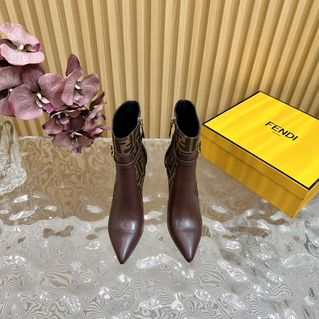 FF BOOTIES BOOTS IN SANGRIA PURPLE CALFSKIN AND MONOGRAM FF FABRIC