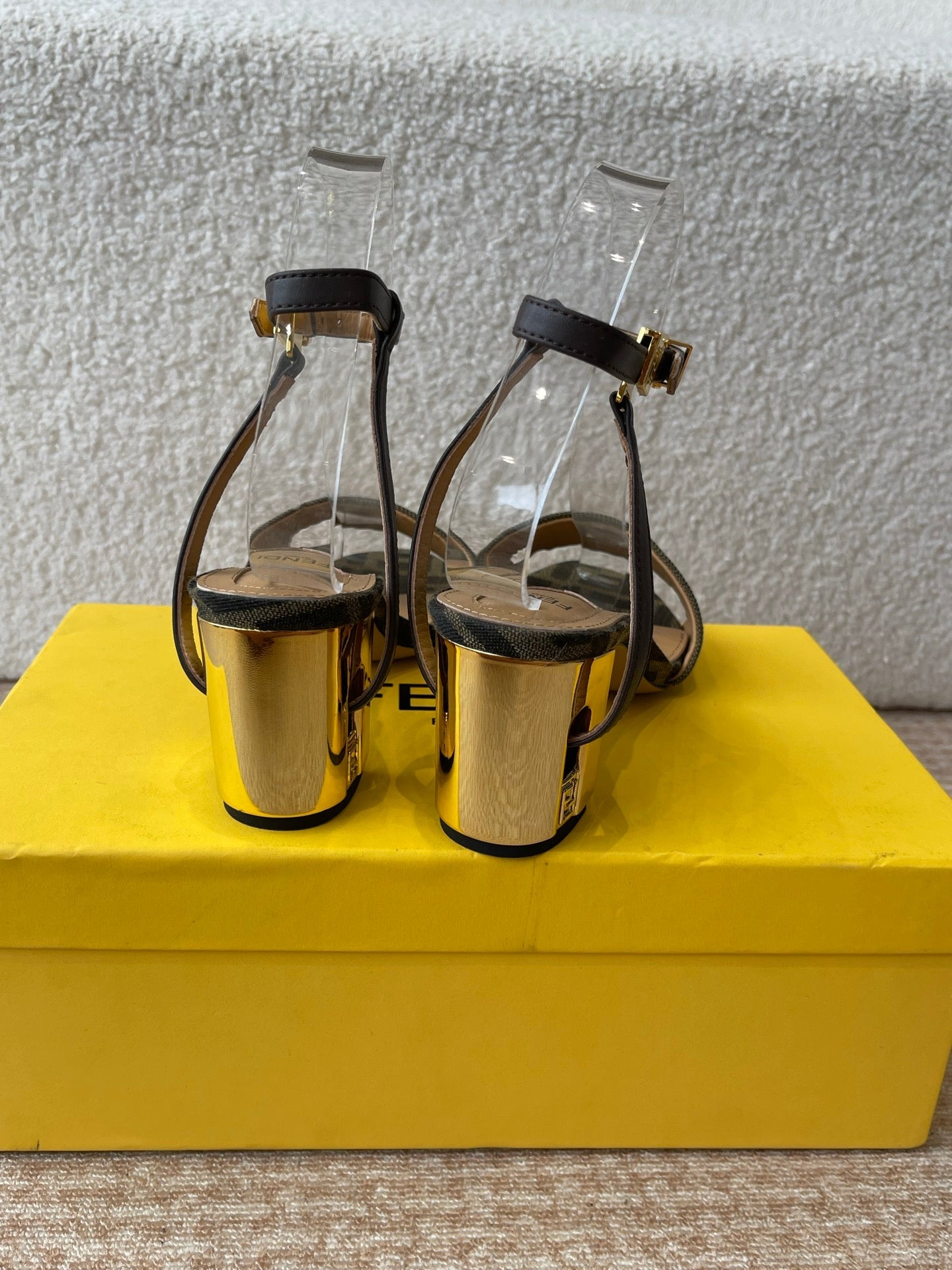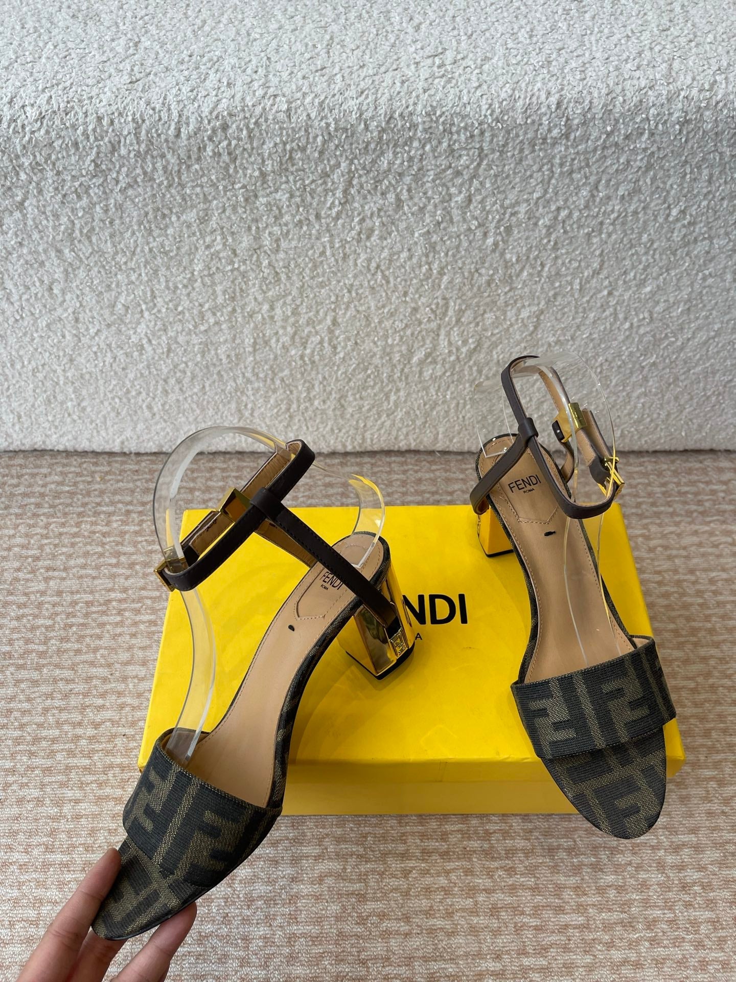FF FIRST HIGH-HEEL 70MM IN KHAKI FABRIC AND CALFSKIN