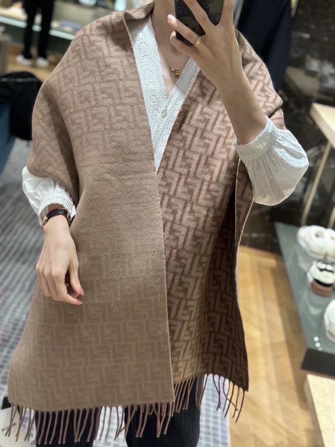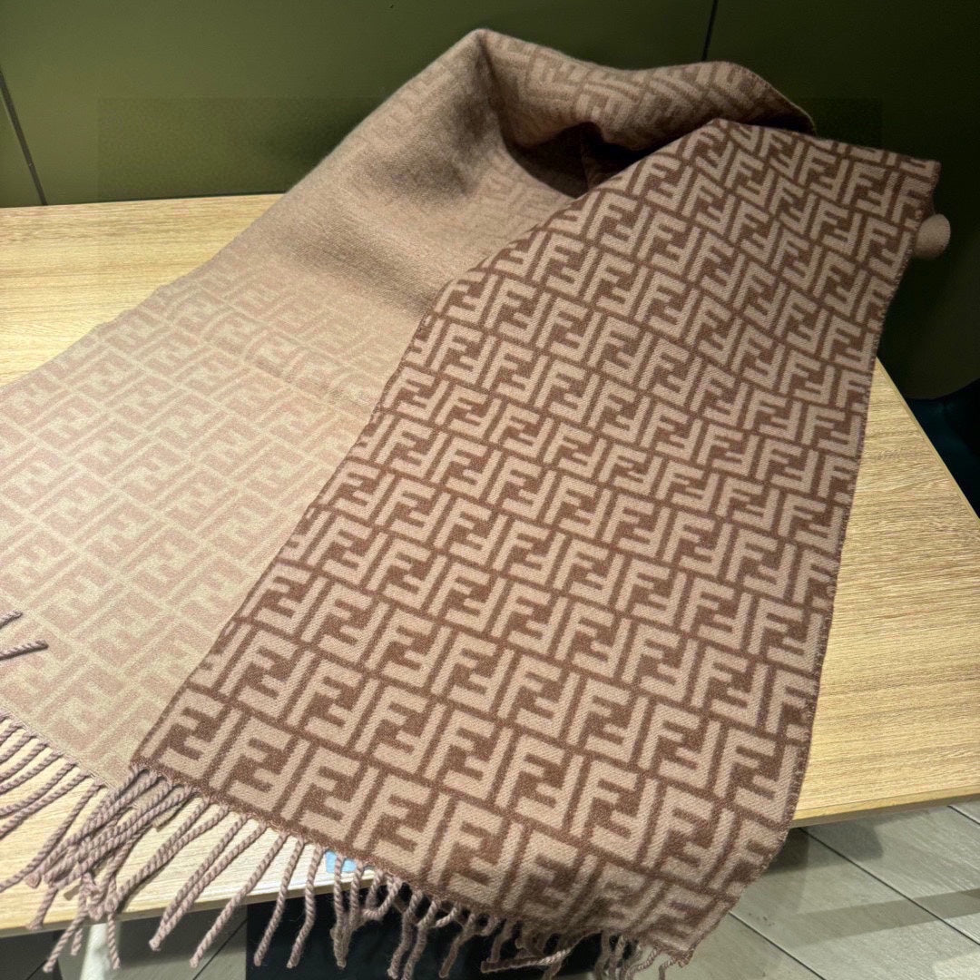 FF SCARF 180 CM IN MEDIUM BROWN MONOGRAM WOOL AND CASHMERE 411831