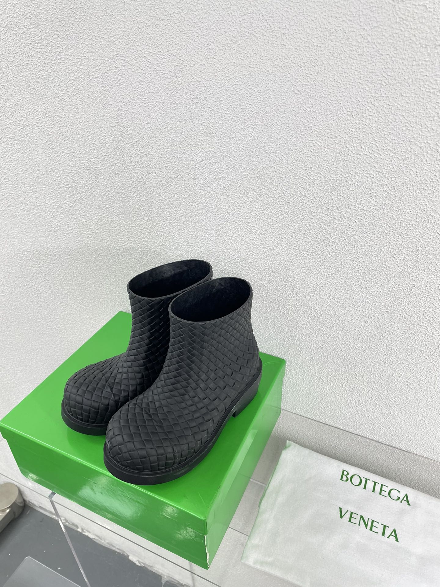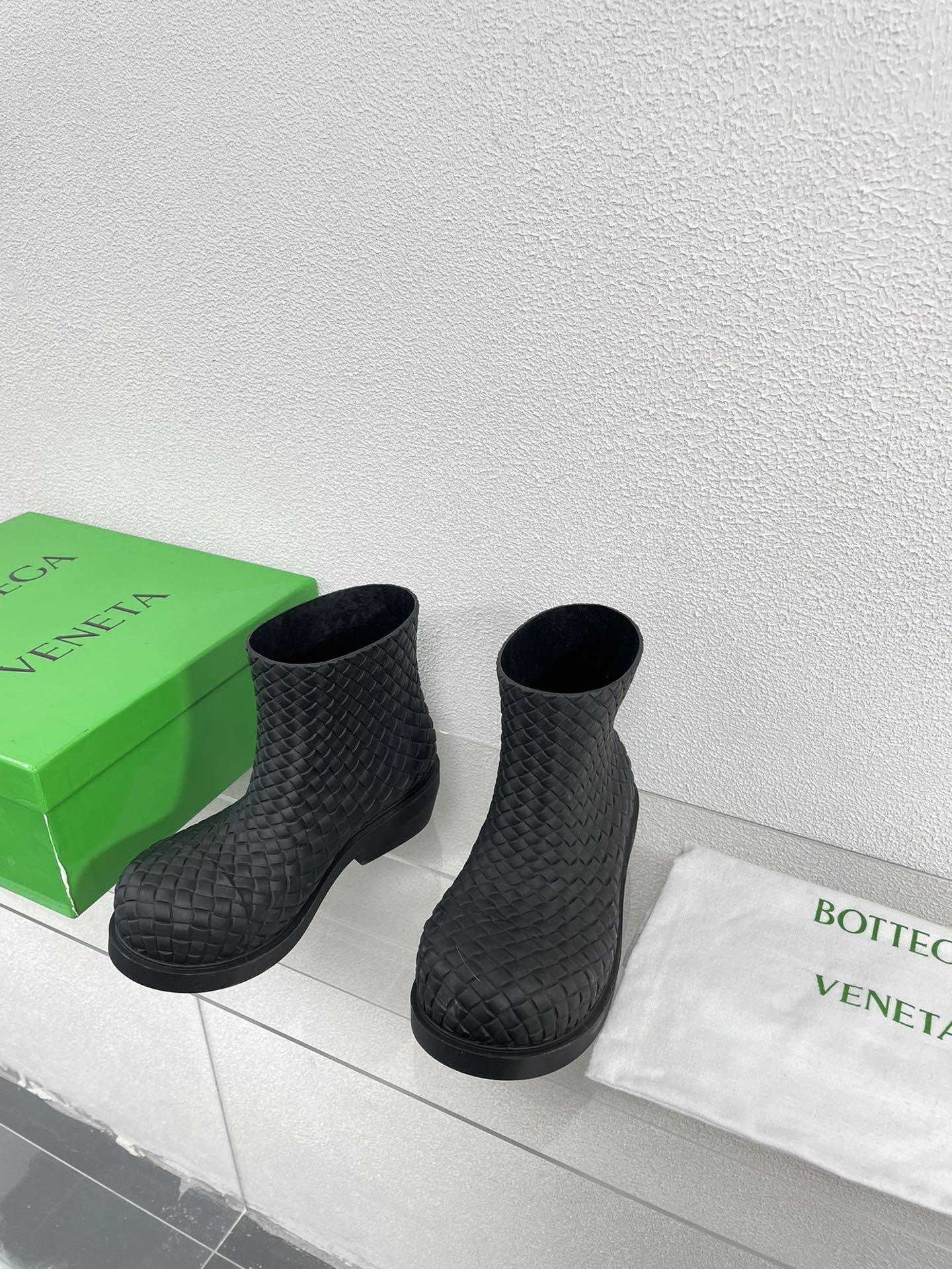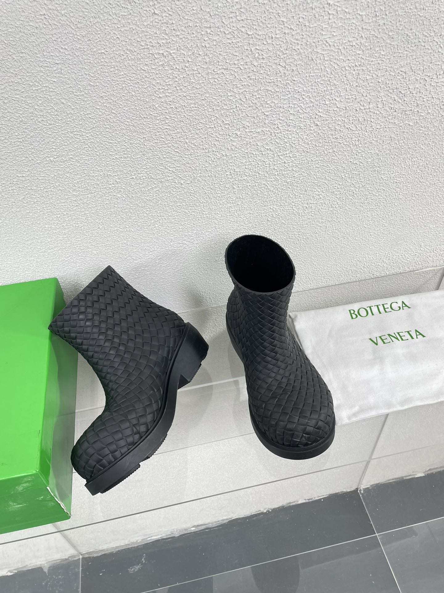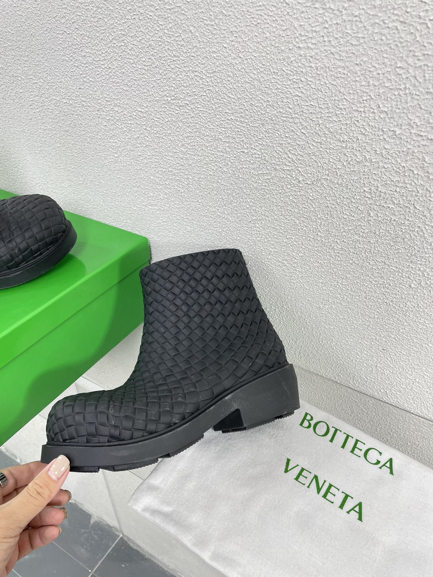 FIREMAN BOOTS IN BLACK RUBBER WITH ICONIC INTRECCIO MOTIF