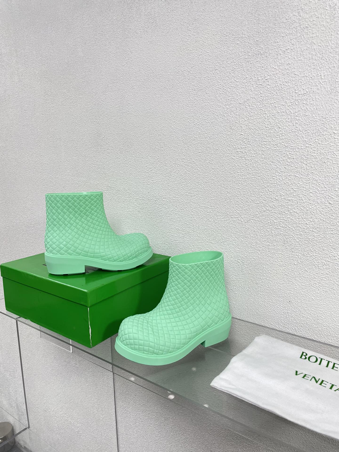 FIREMAN BOOTS IN GREEN MINT RUBBER WITH ICONIC INTRECCIO MOTIF