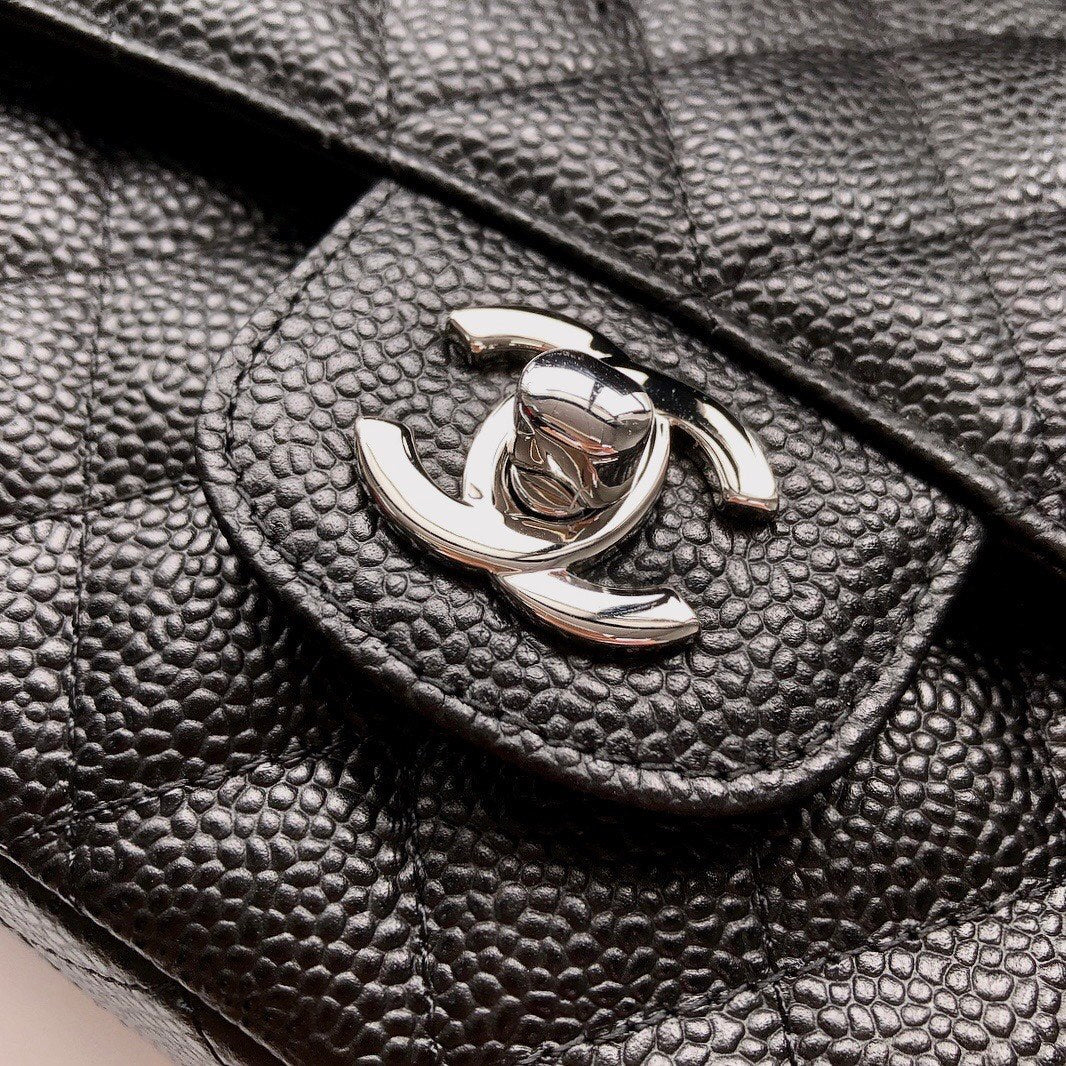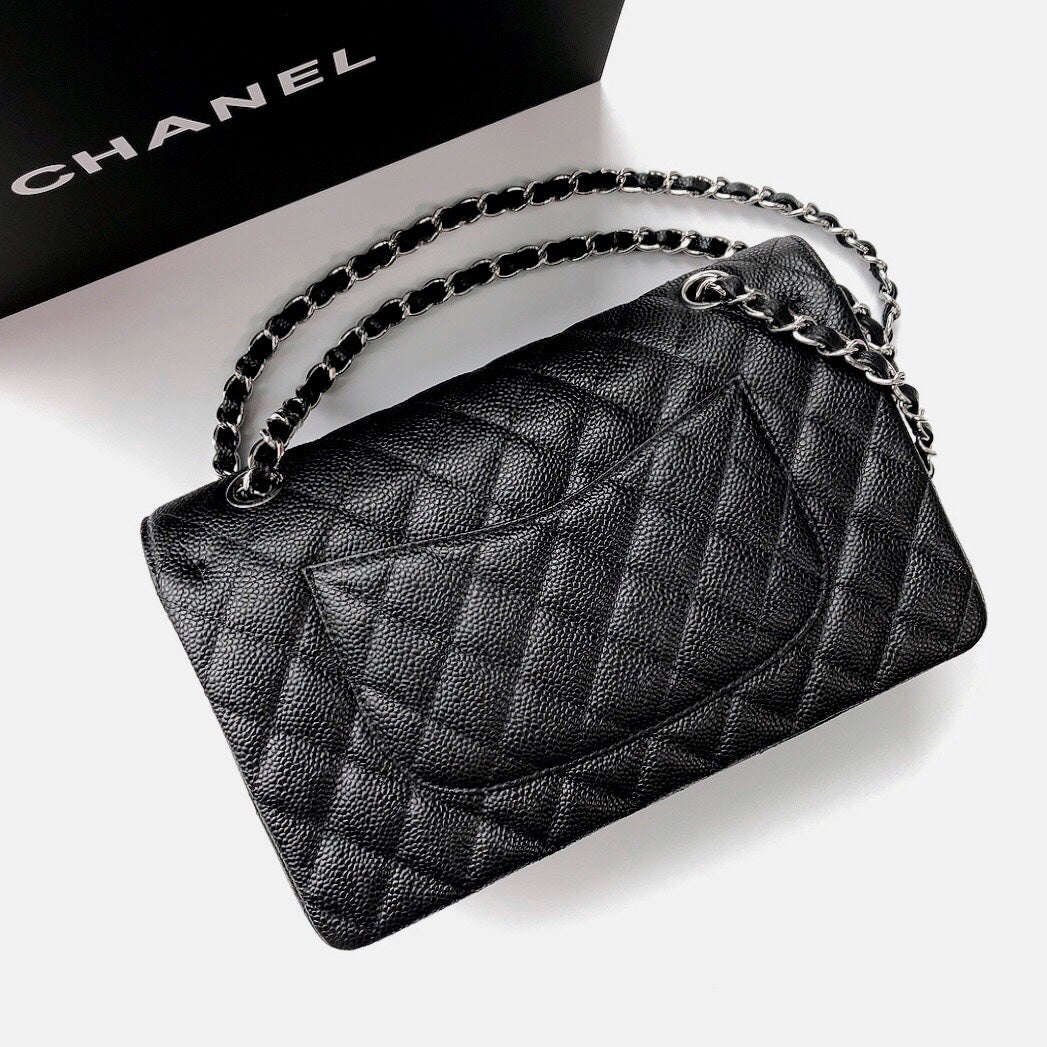 FLAP BAG 25 IN BLACK CAVIAR LEATHER SILVER HARDWARE