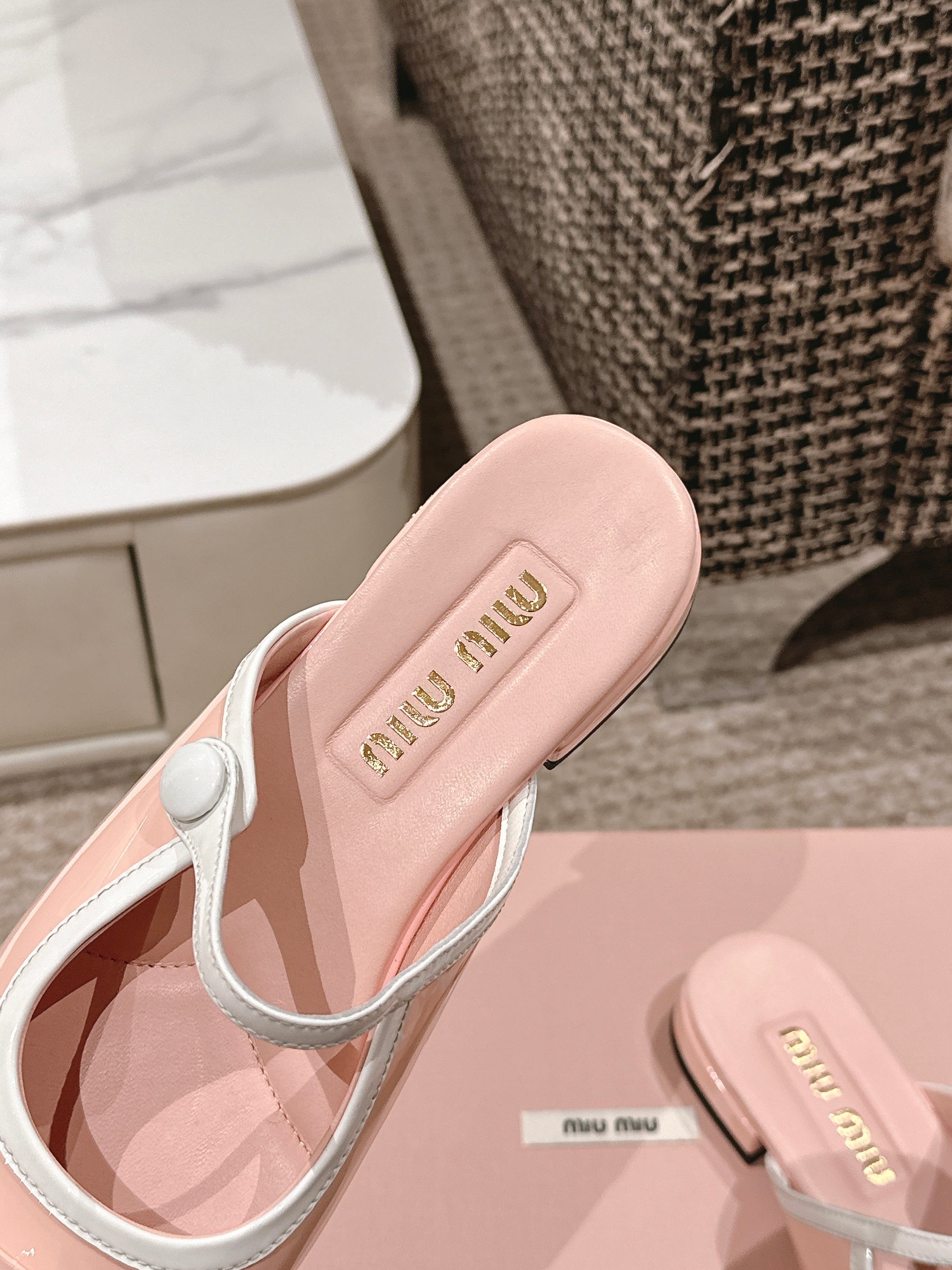 FLAT MULE IN PALE PINK PATENT CALFSKIN