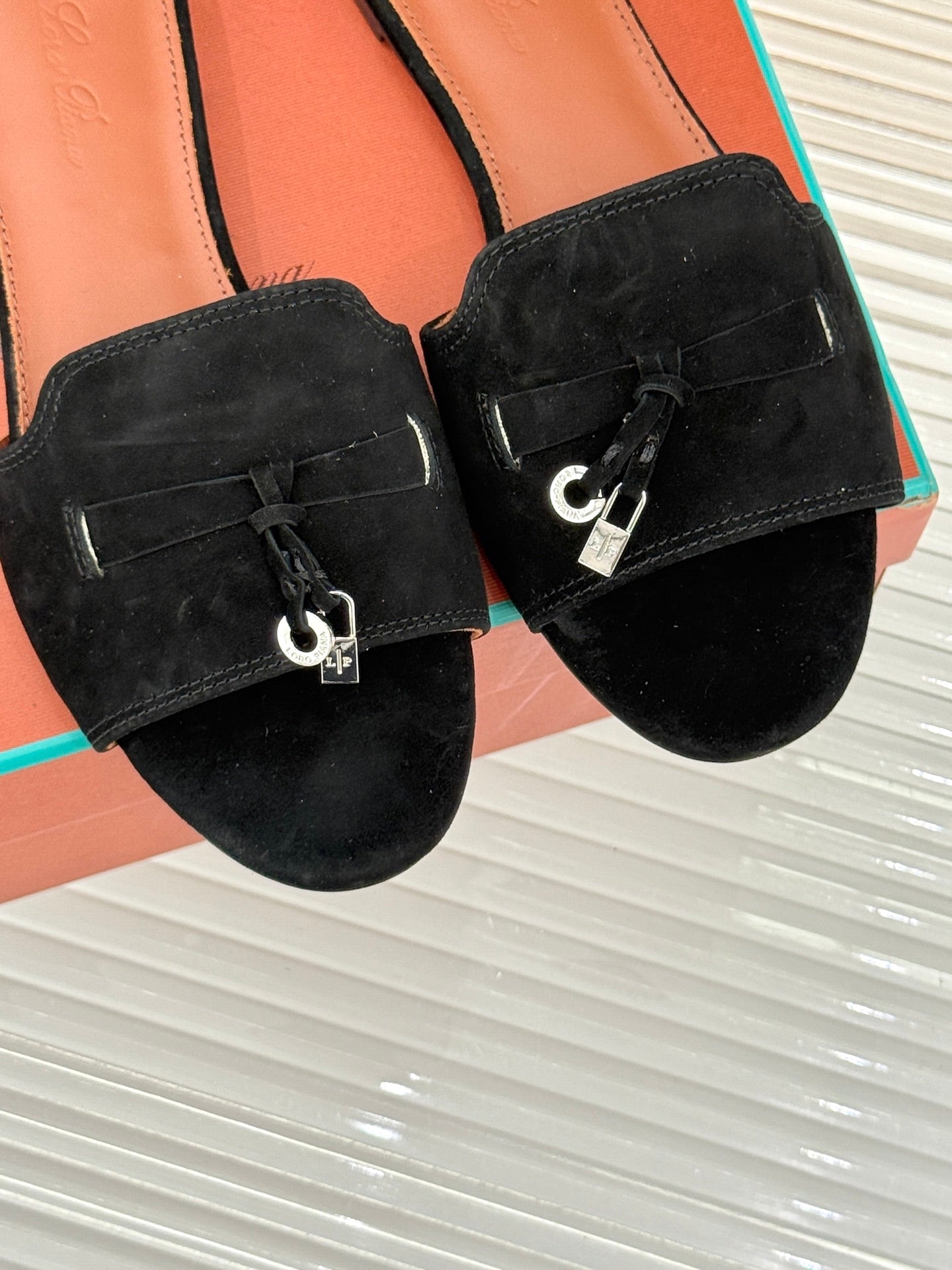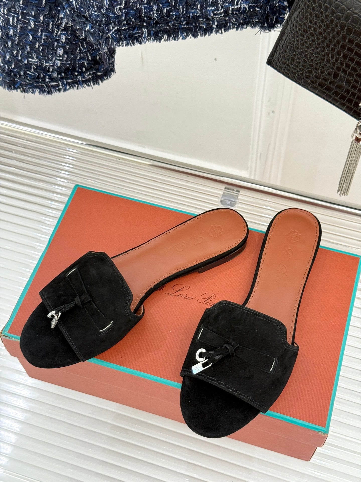 FLAT SANDALS IN BLACK SUEDE AND LAMBSKIN