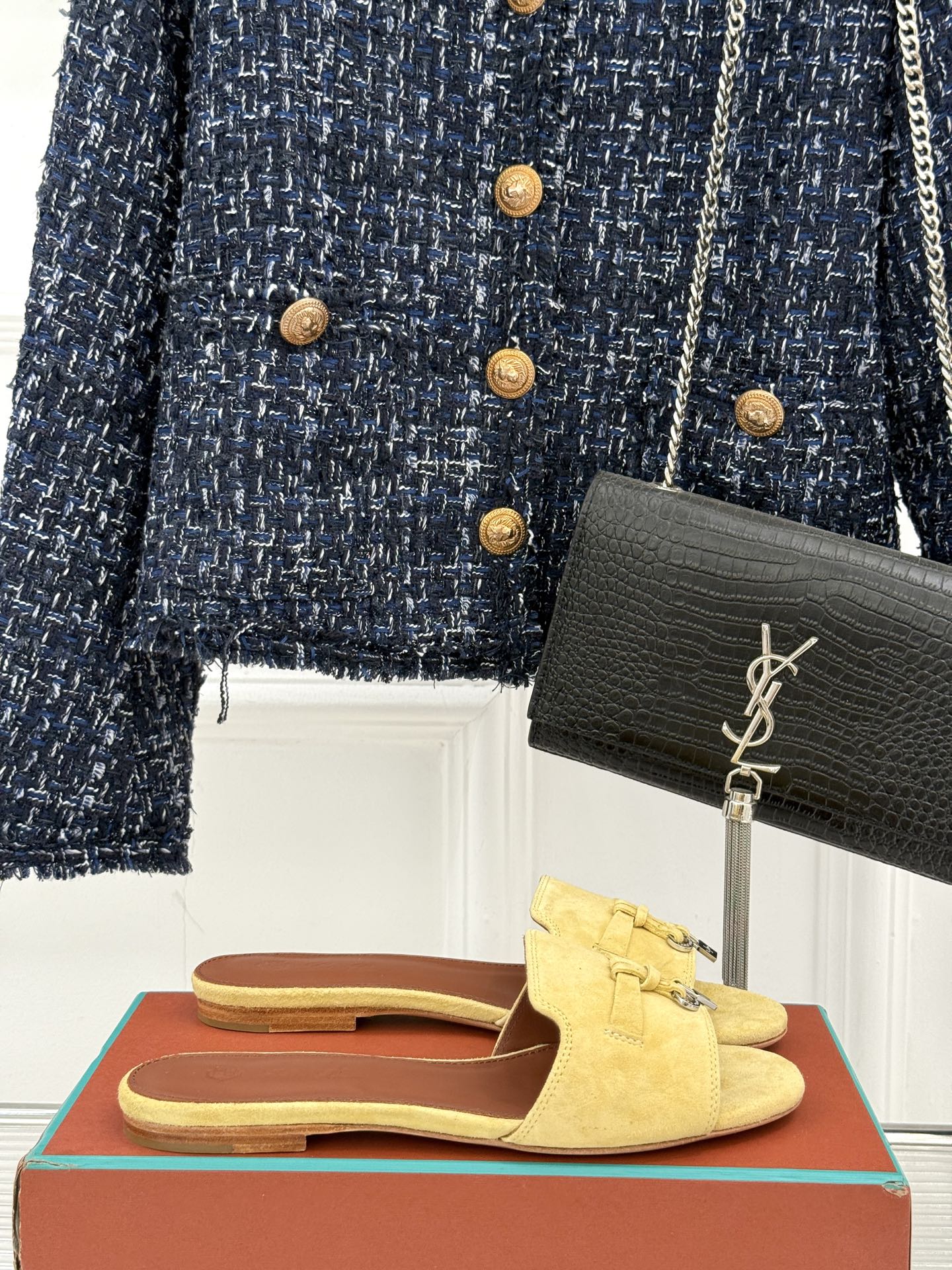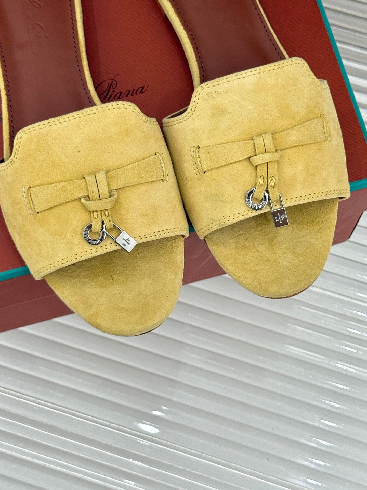 FLAT SANDALS IN YELLOW SUEDE AND LAMBSKIN
