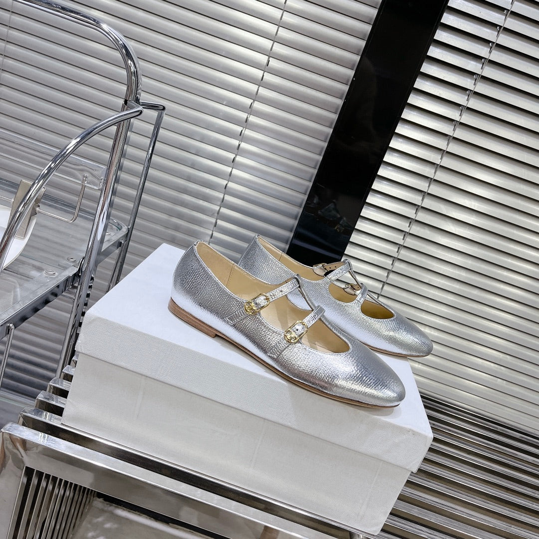 FLAT SANDALS WITH DOUBLE STRAP-DESIGN LEATHER SILVER