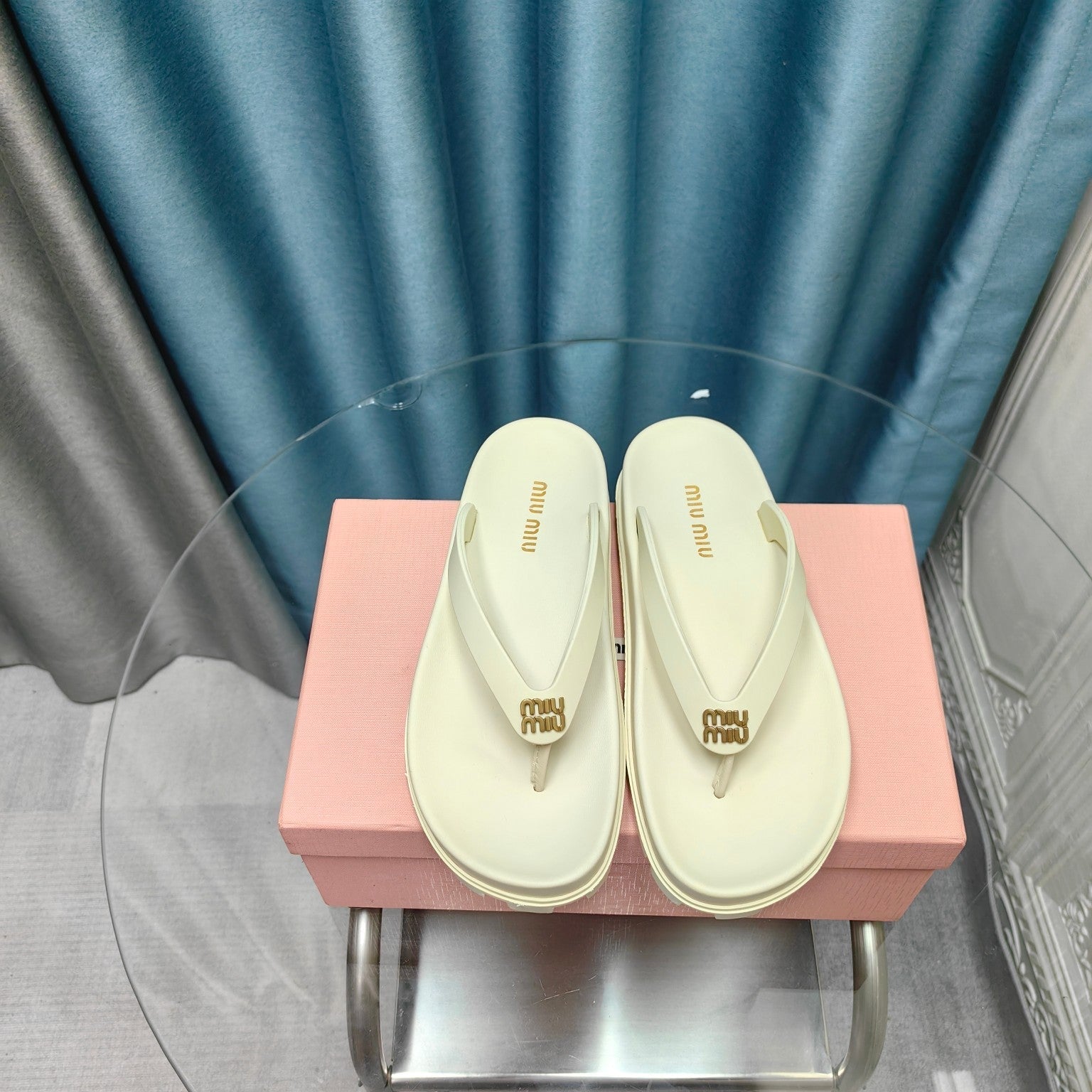 Flip Flop Sandals Macaroon Cream Calfskin