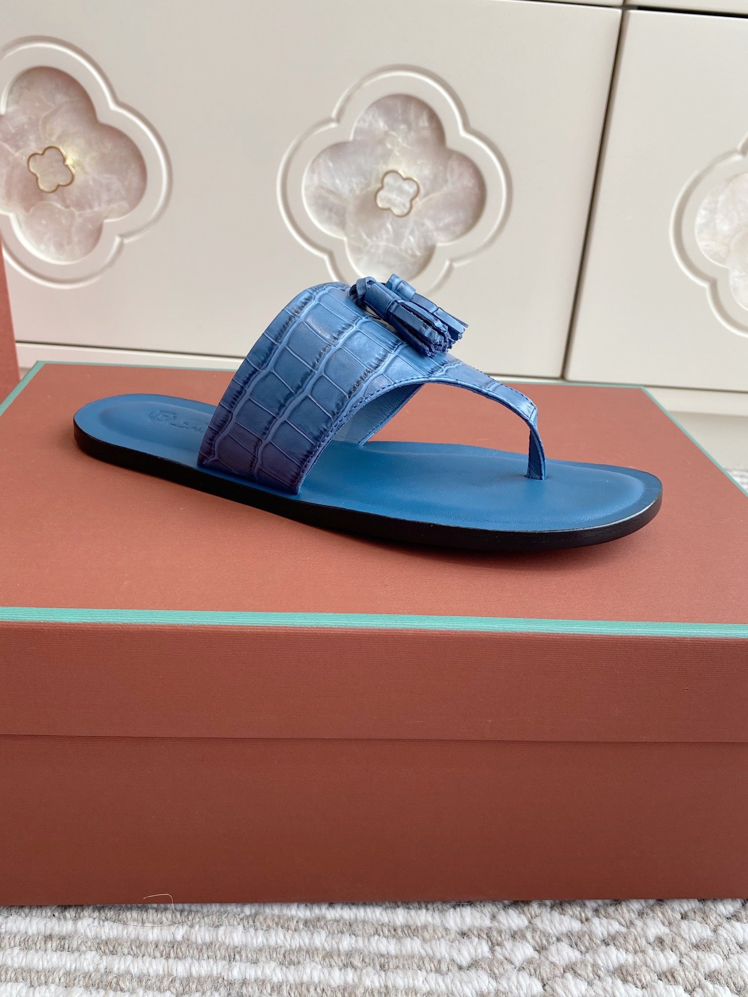 FLIP FLOPS IN BLUE LAMBSKIN SNAKE EMBOSSING