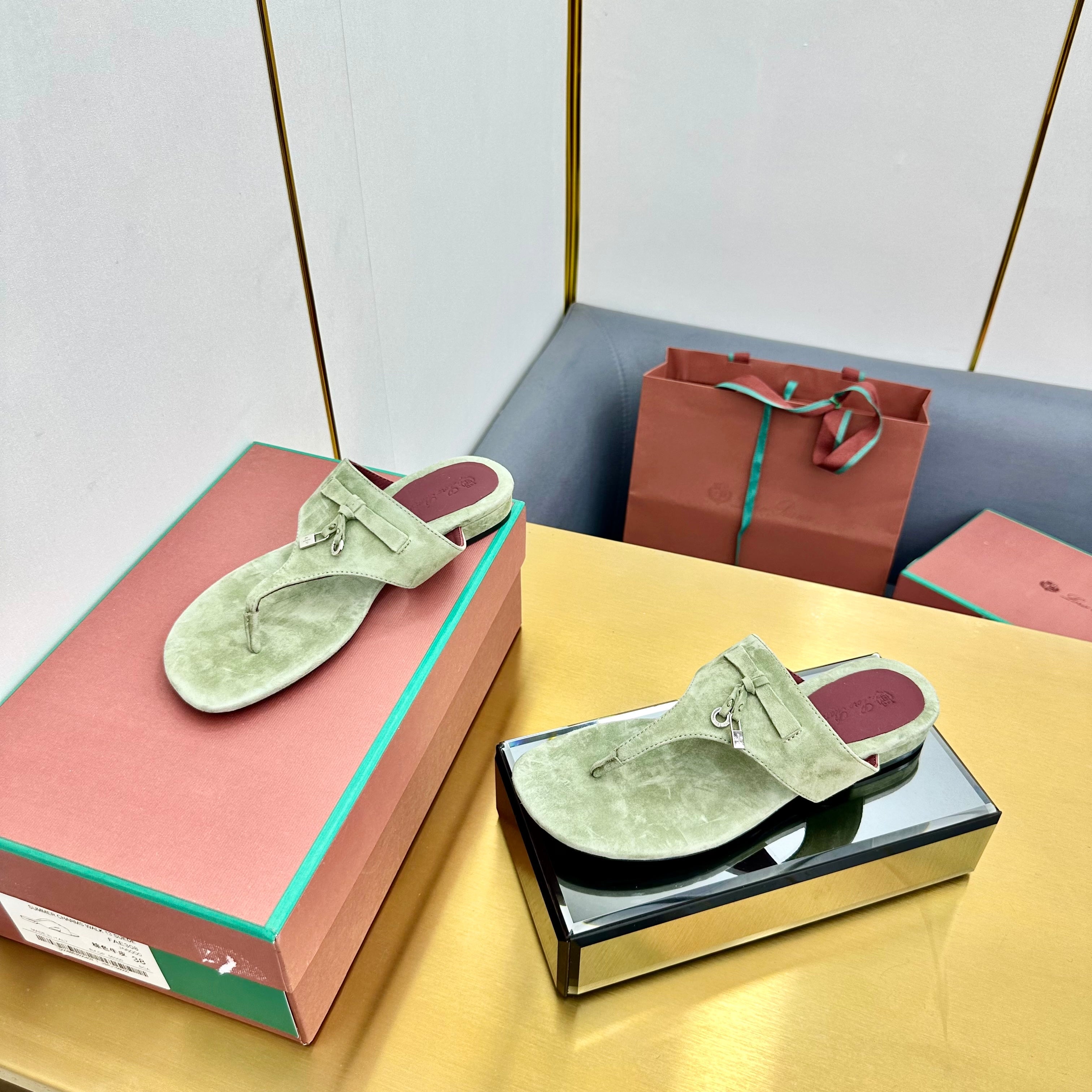 FLIP FLOPS IN GREEN SUEDE AND HARDWARE SILVER