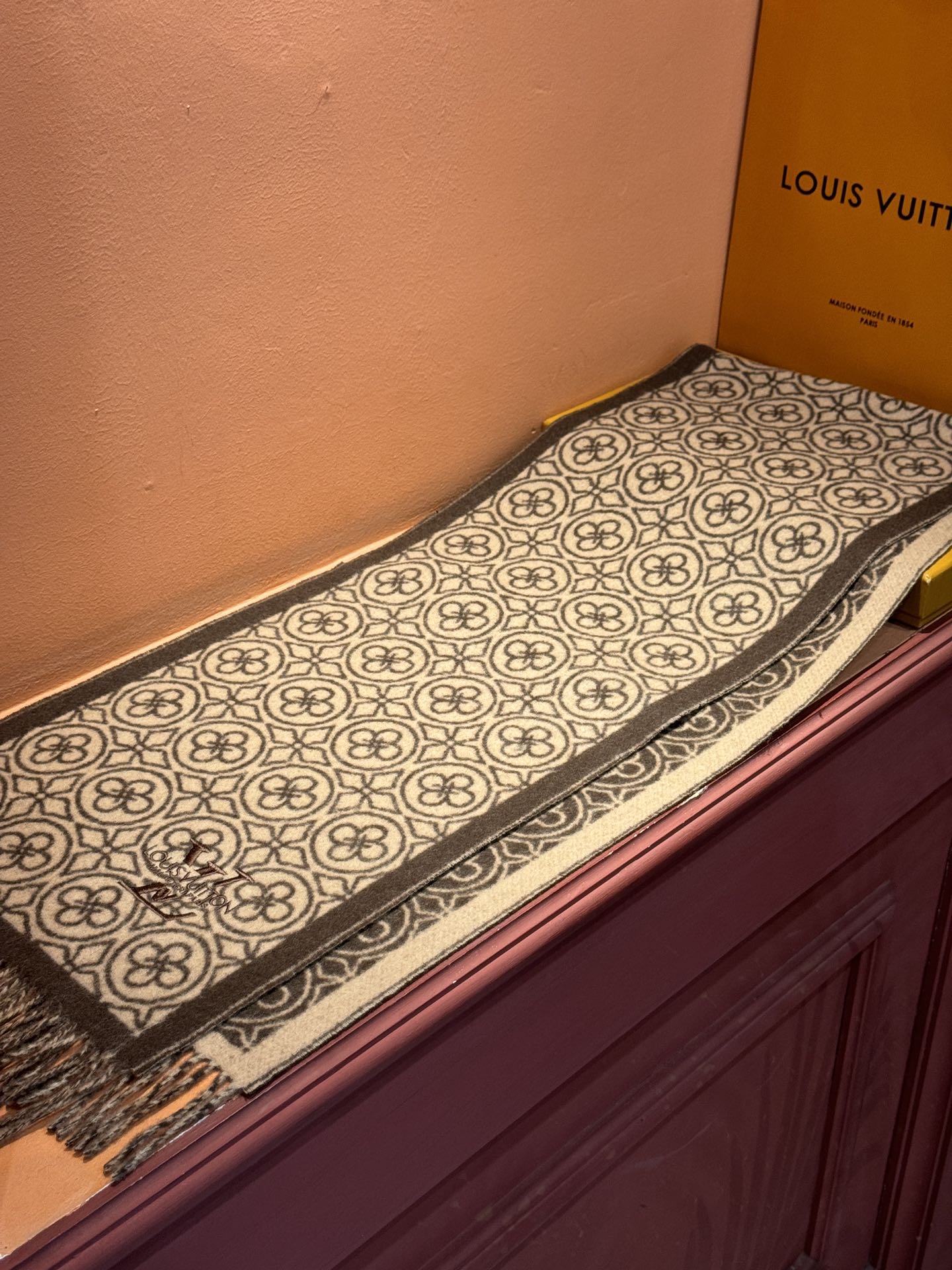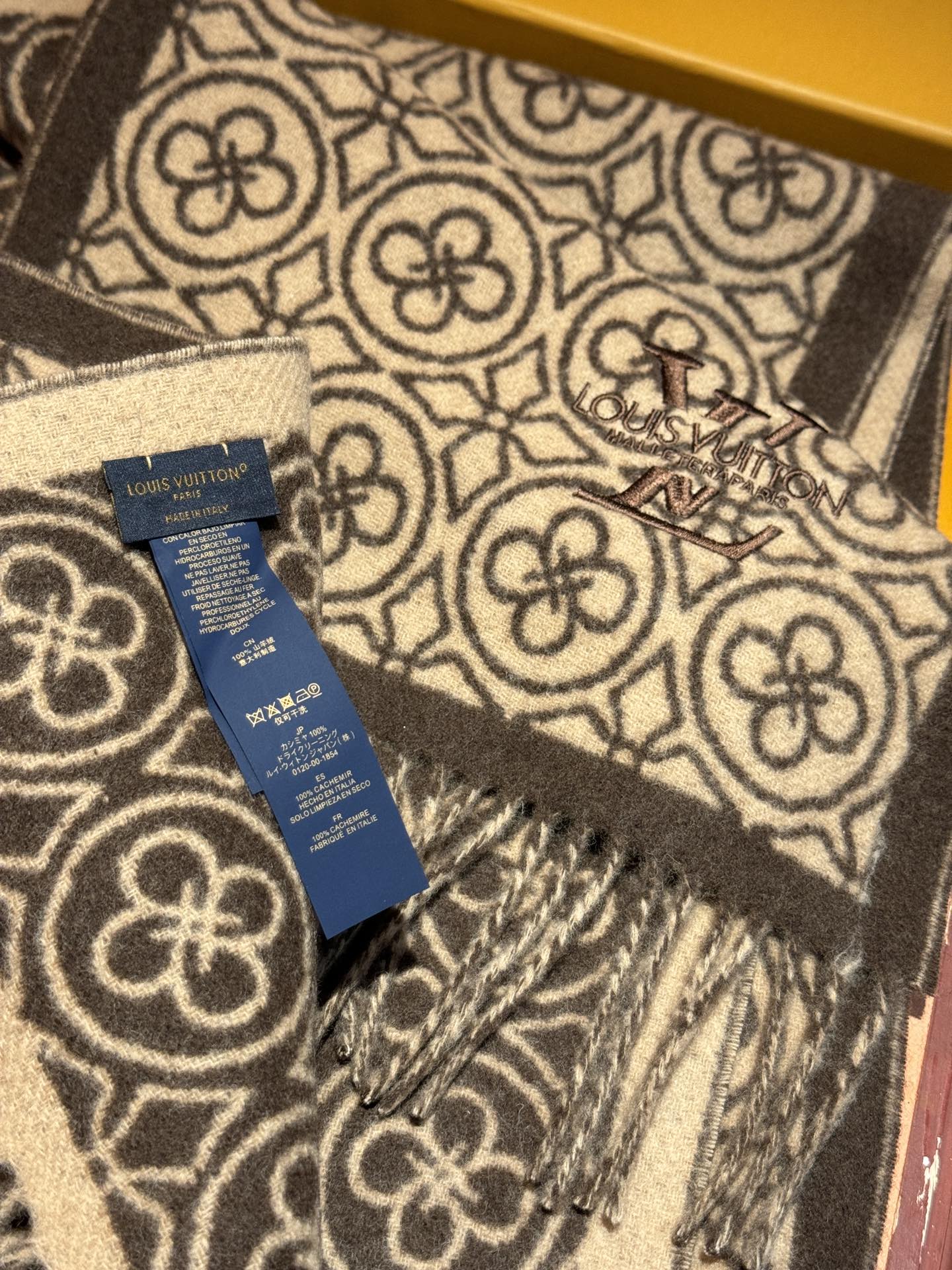 FLOWER MONOGRAM SCARF 180 CM IN MEDIUM BROWN CASHMERE 388306
