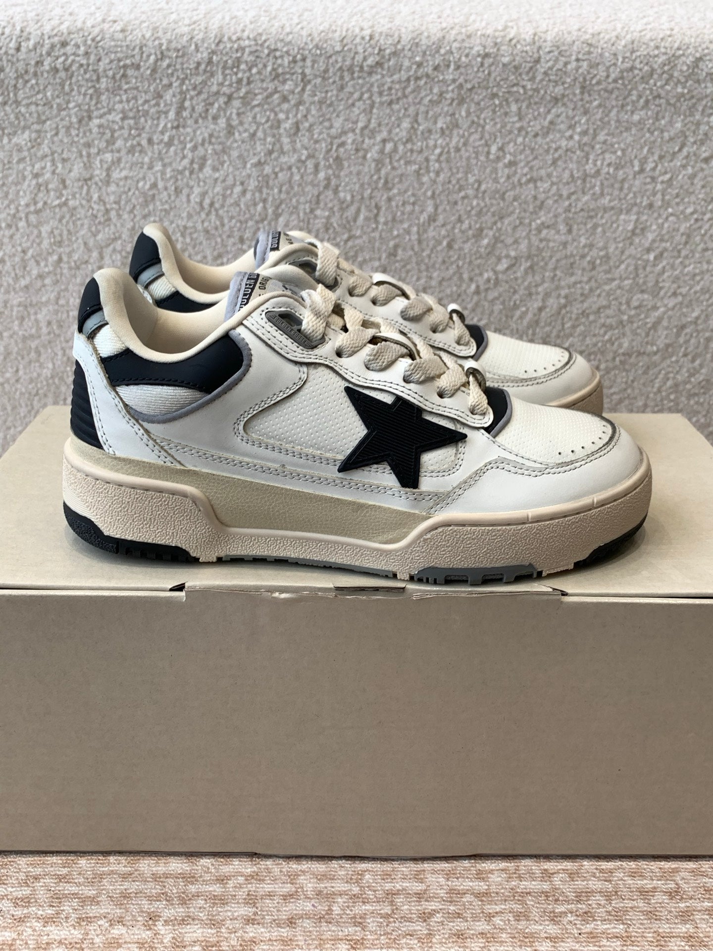 FORTY2 SNEAKERS WITH BLACK STAR AND WHITE LEATHER HEEL TAB