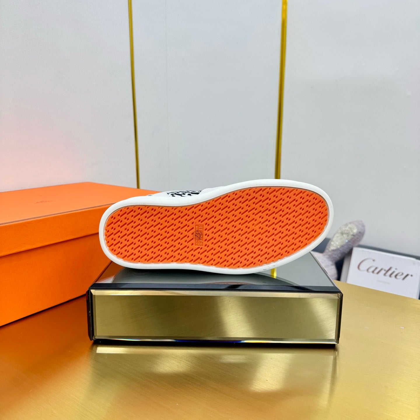 FREE SNEAKER IN WHITE CALFSKIN AND "H EN BIAIS" BLACK CANVAS