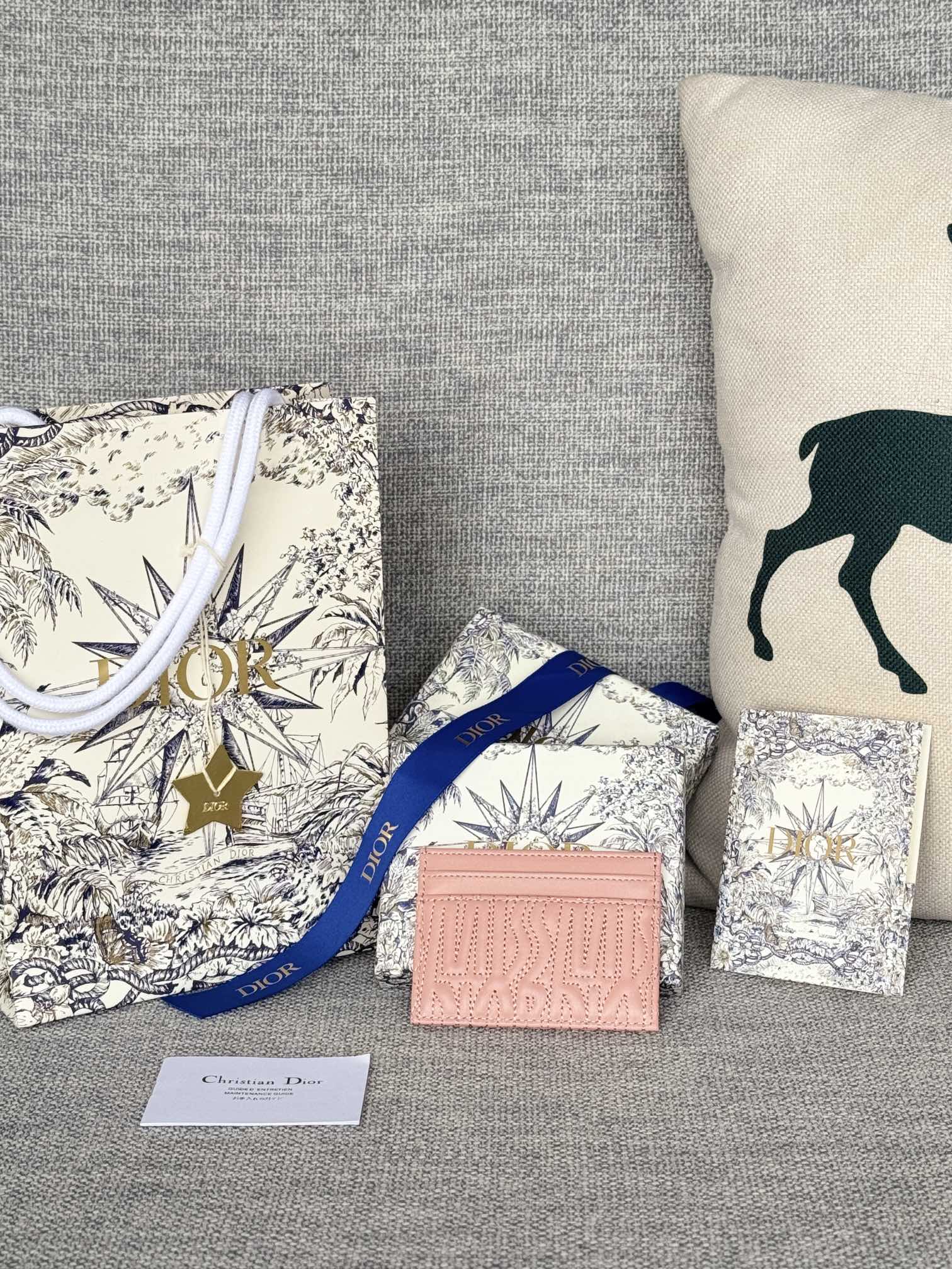 FREESIA CARD HOLDER 10 IN BABY PINK QUILTED ALLOVER CALFSKIN