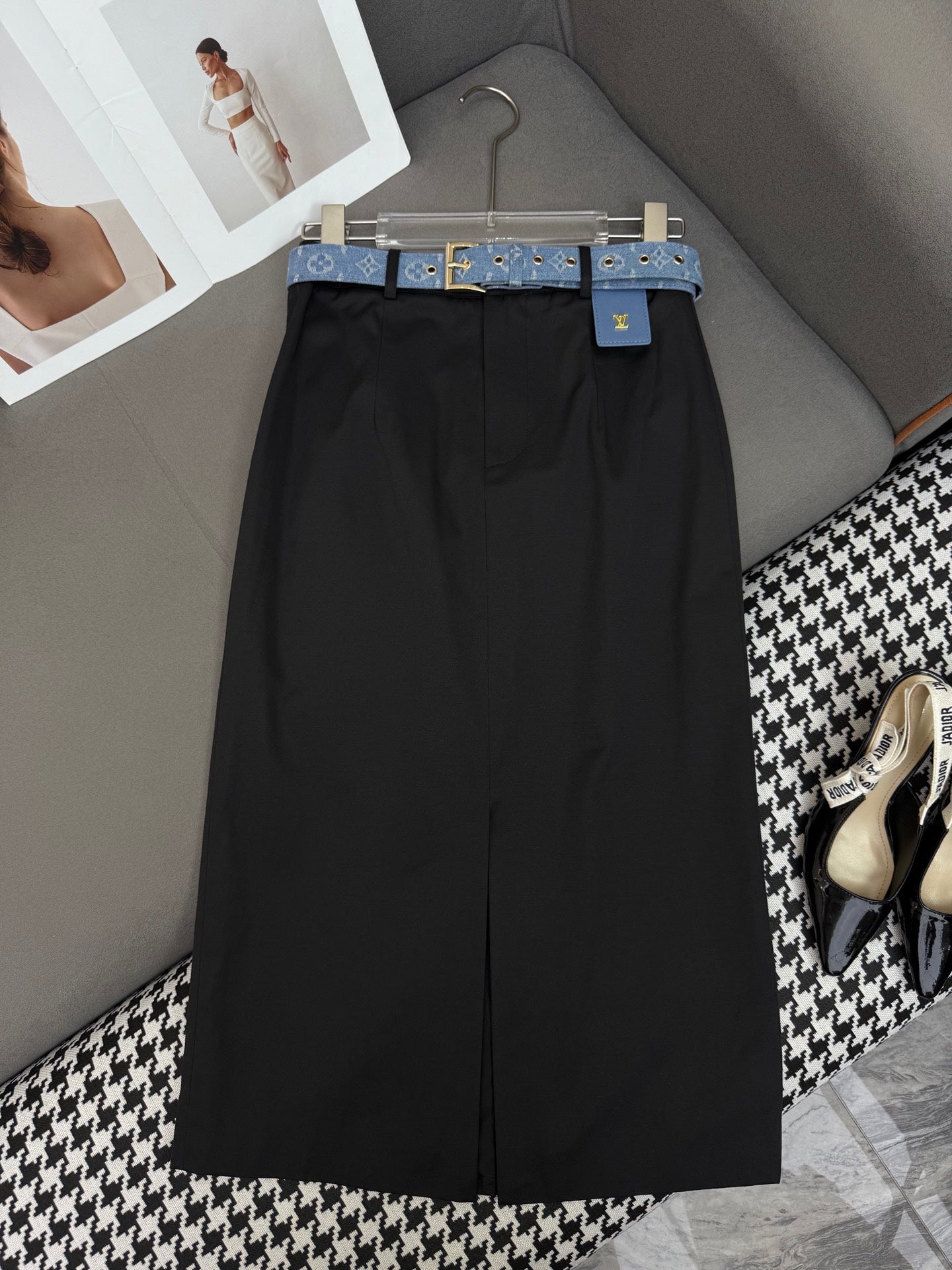 FRONT-SLIT SKIRT WITH LOGO BELT