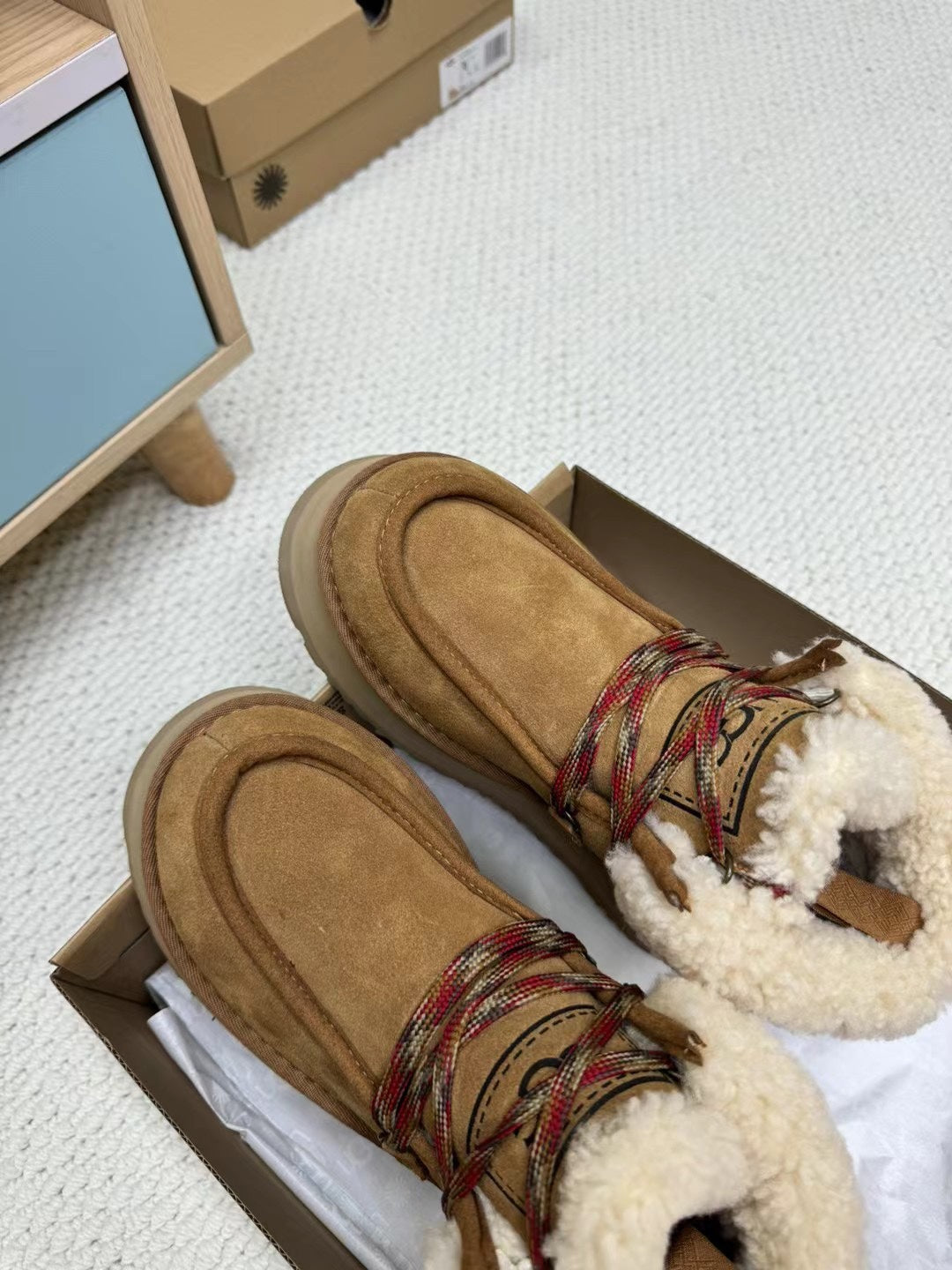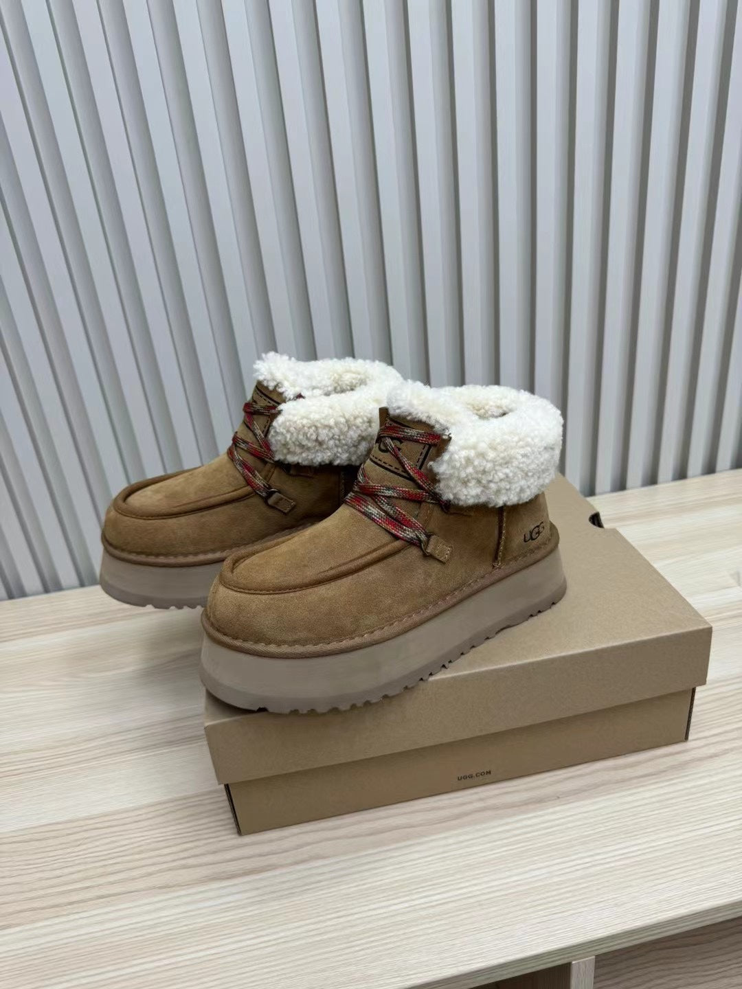 FUNKARRA CABIN CUFF COFFEE BROWN SUEDE AND WHITE LAMB FUR