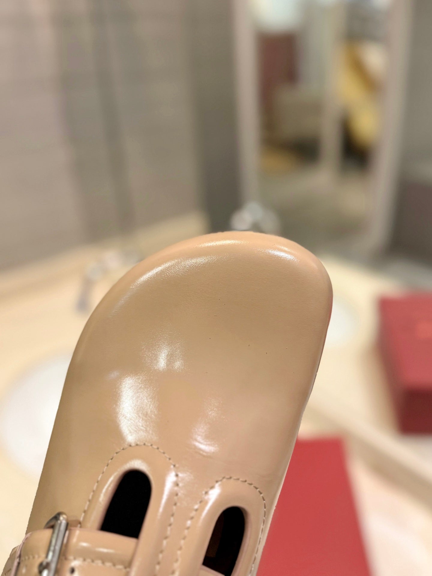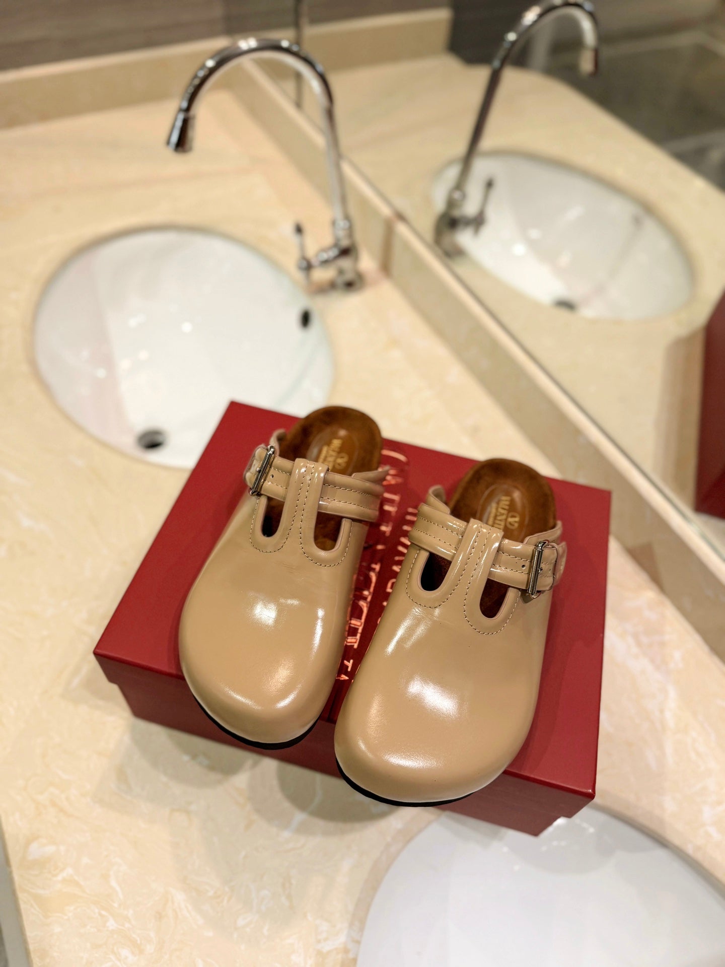 FUSSFRIEND CAMEL BROWN PATENT CALFSKIN LEATHER SABOT