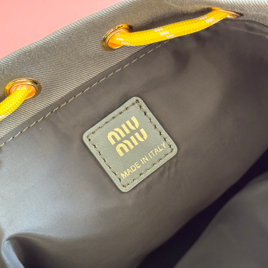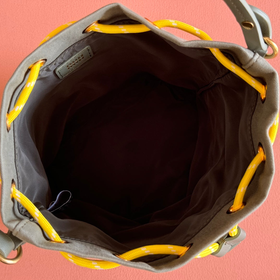 GABADINE POUCH 22.5 IN OLIVE GREEN CANVAS YELLOW DRAWSTRING