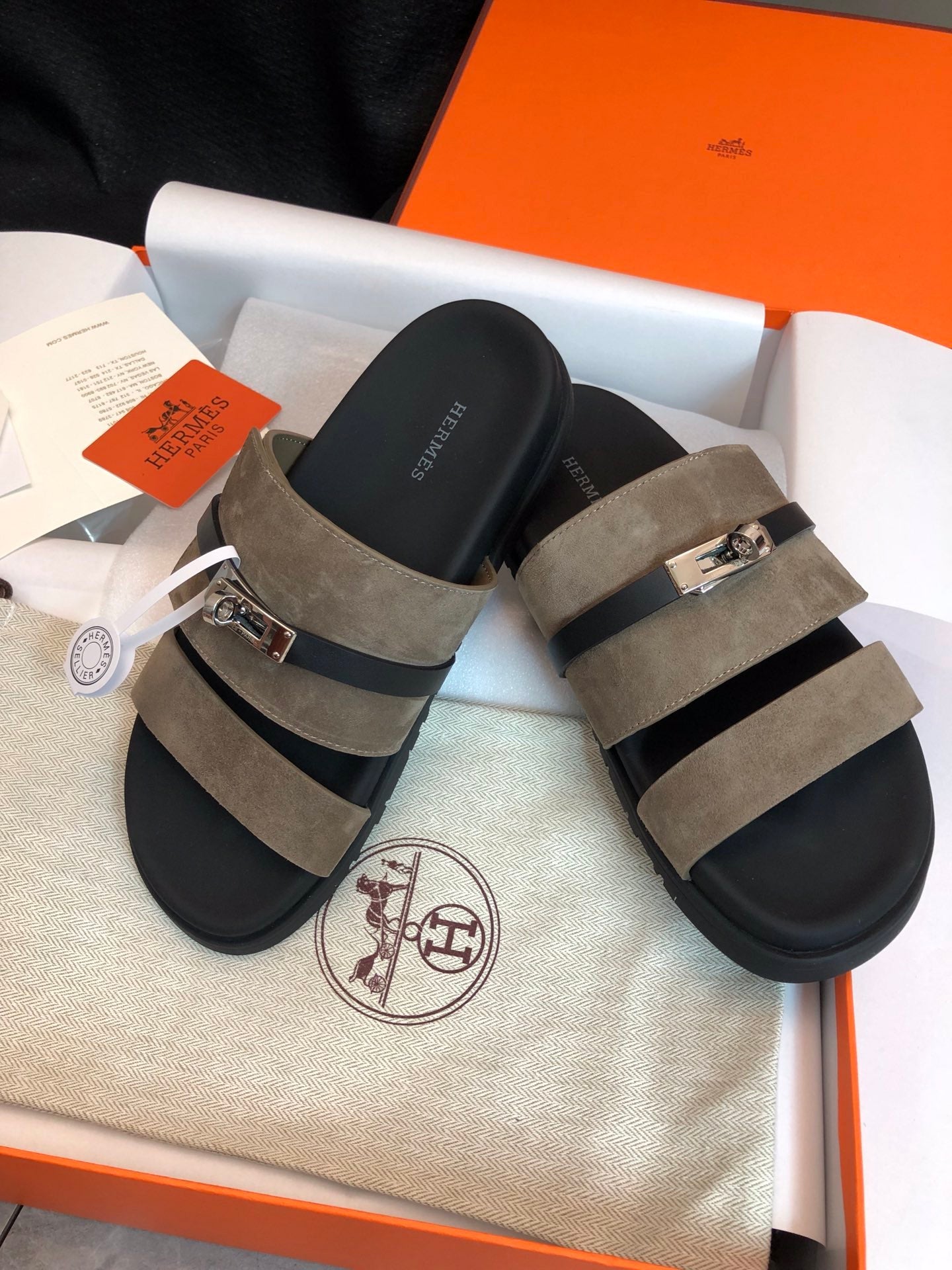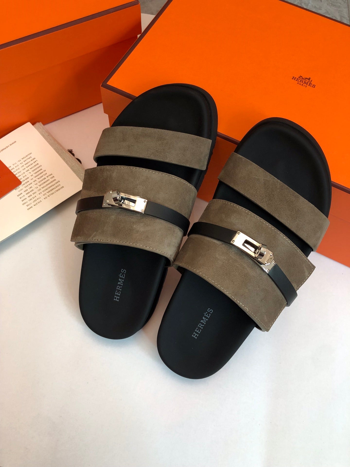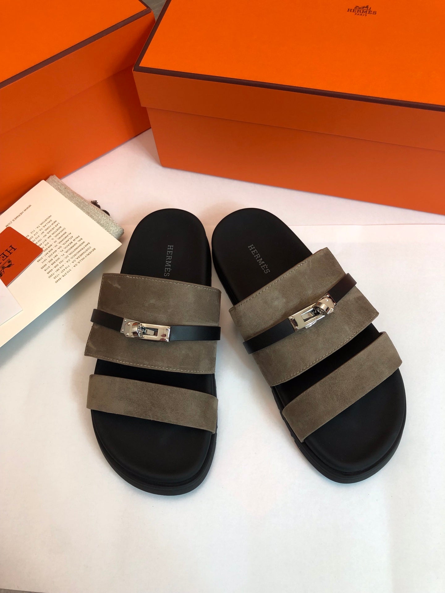 GABRIEL SANDAL MULE IN GRAYISH BROWN SUEDE