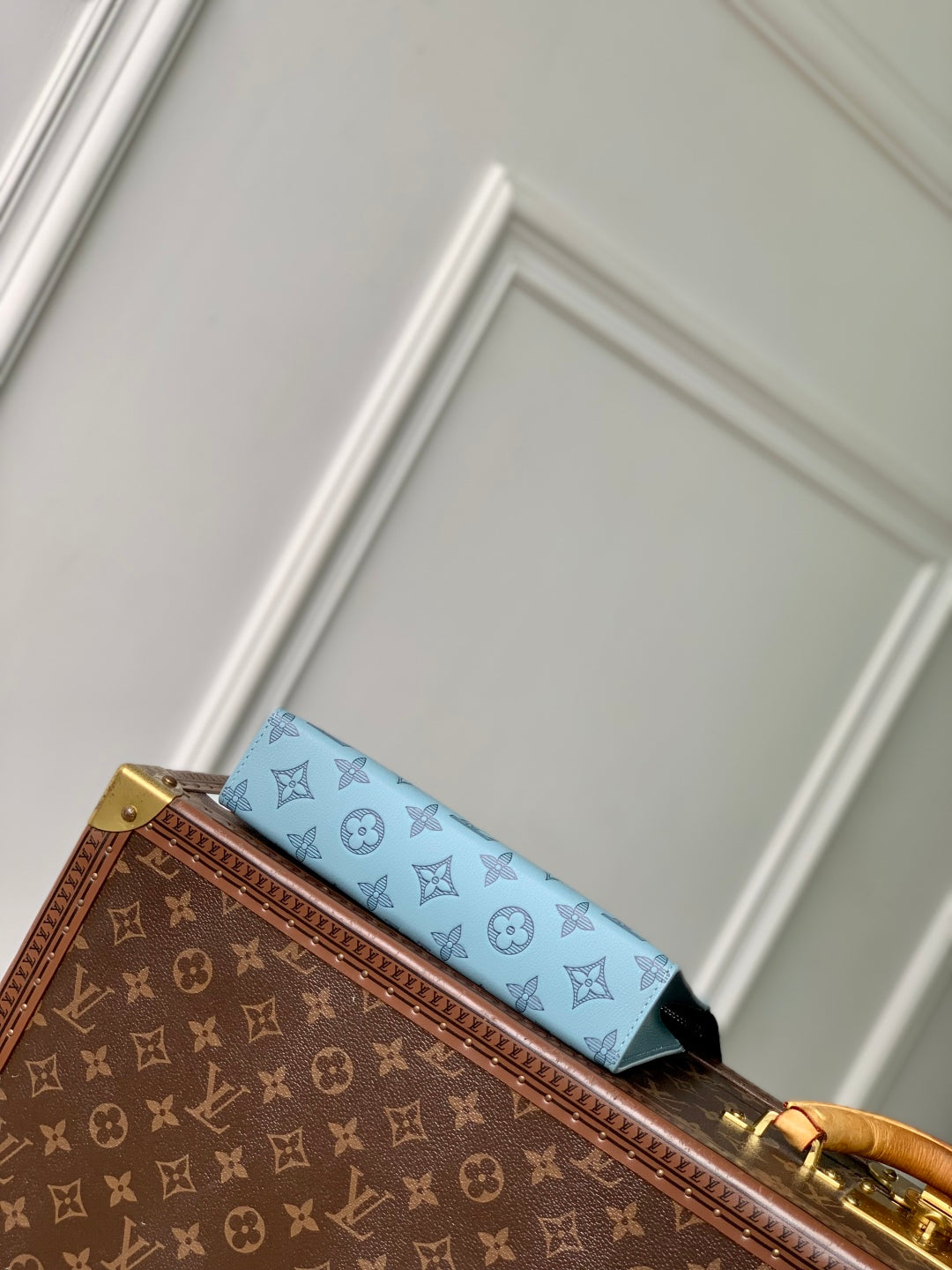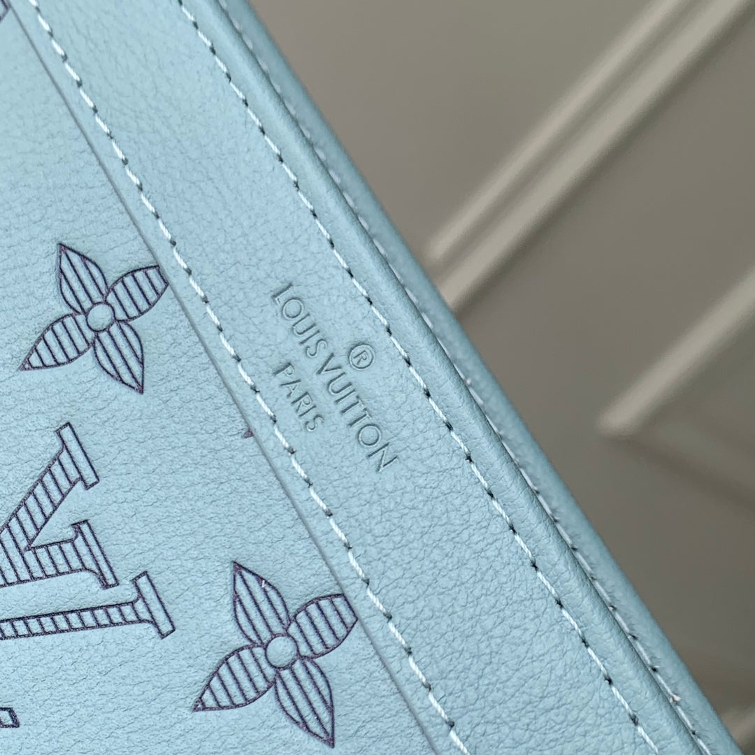 GASTON WEARABLE WALLET 22 IN SKY BLUE MONOGRAM SHADOW CALFSKIN EMBOSSED LOGO