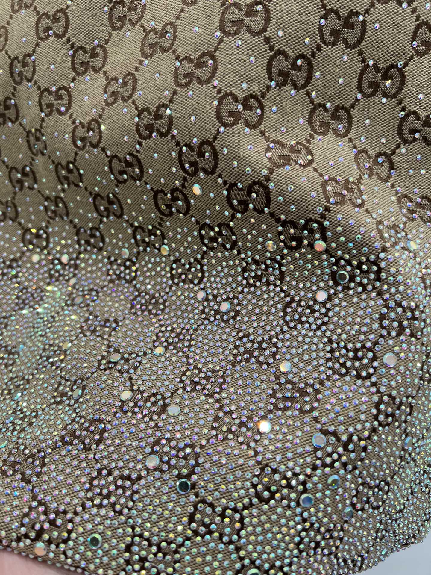 GG Beige Monogram Crystal Embellished Mini Skirt