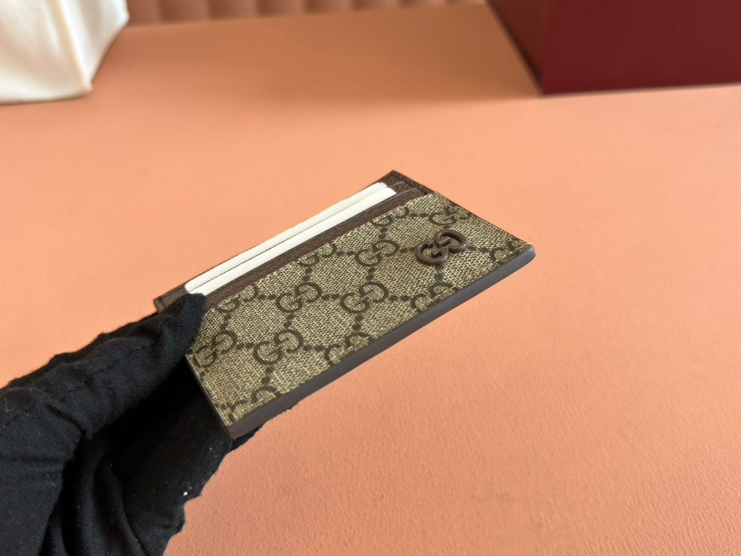 GG CARD CASE 10 IN BEIGE AND BROWN GG CALFSKIN