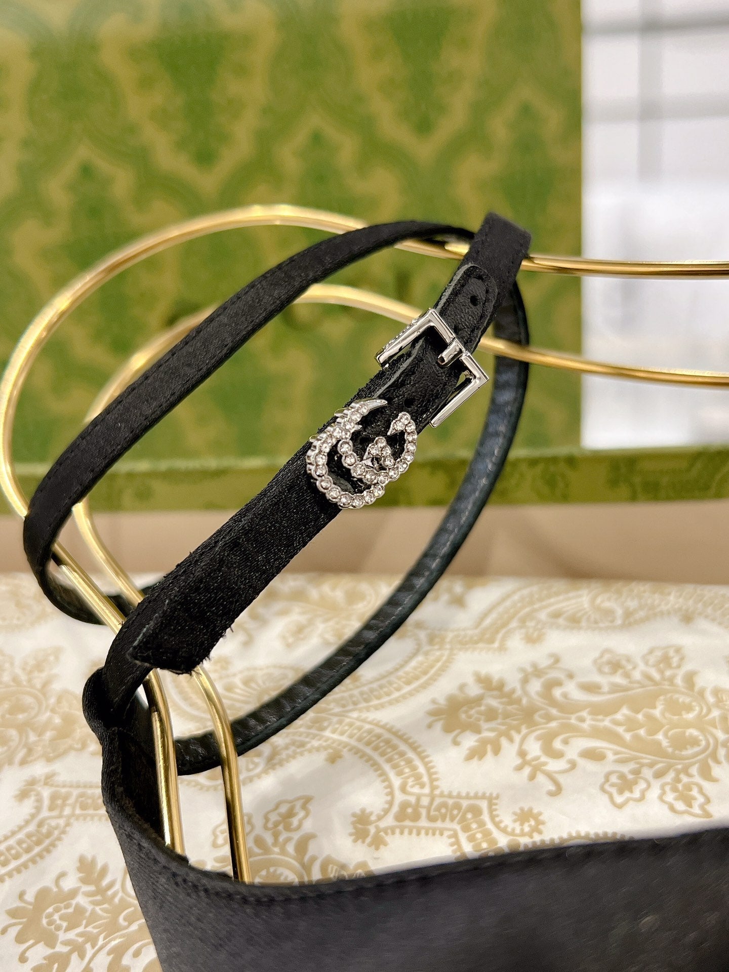 GG CRYSTAL BLACK HIGH HEEL SANDALS SATIN