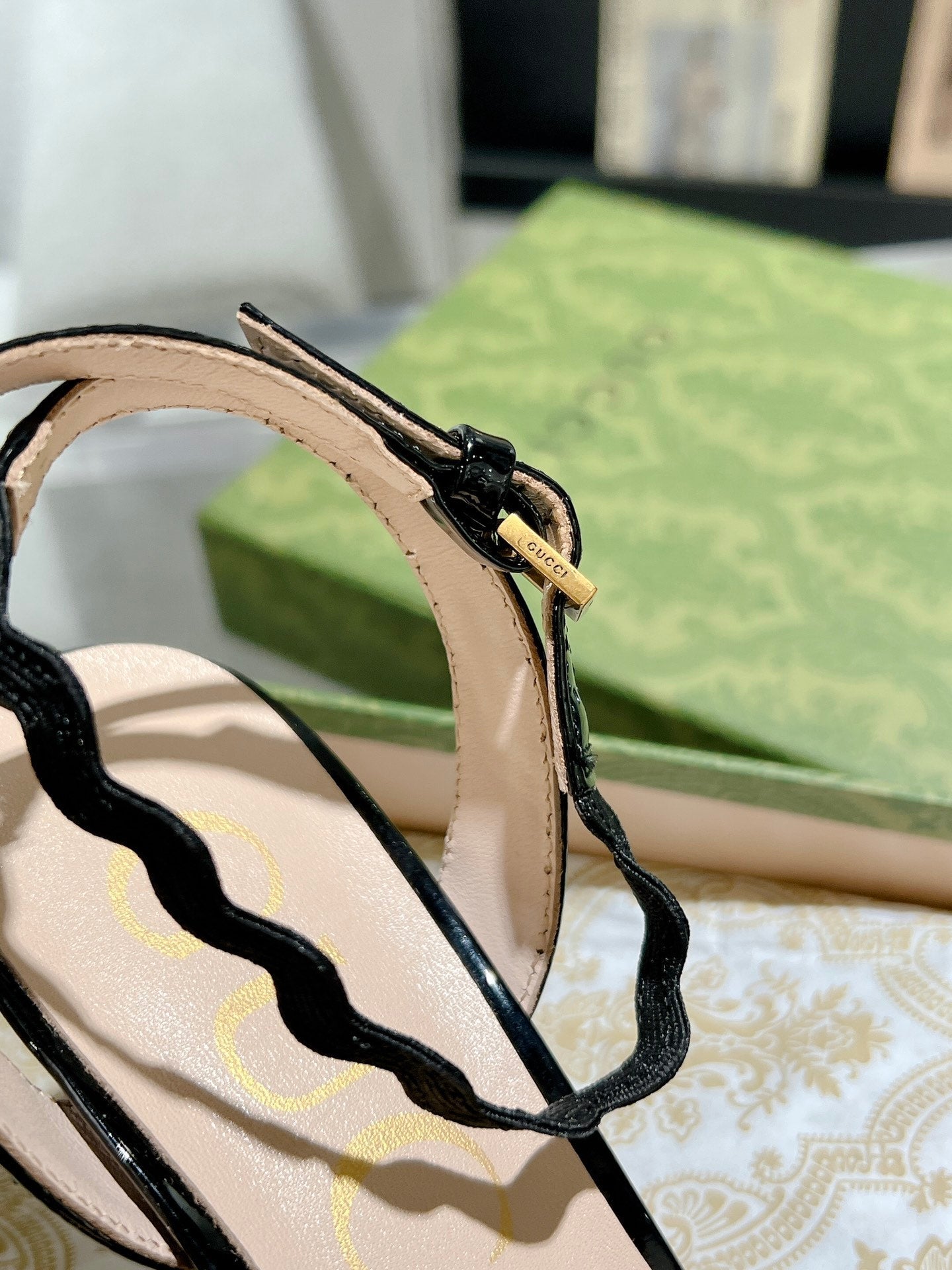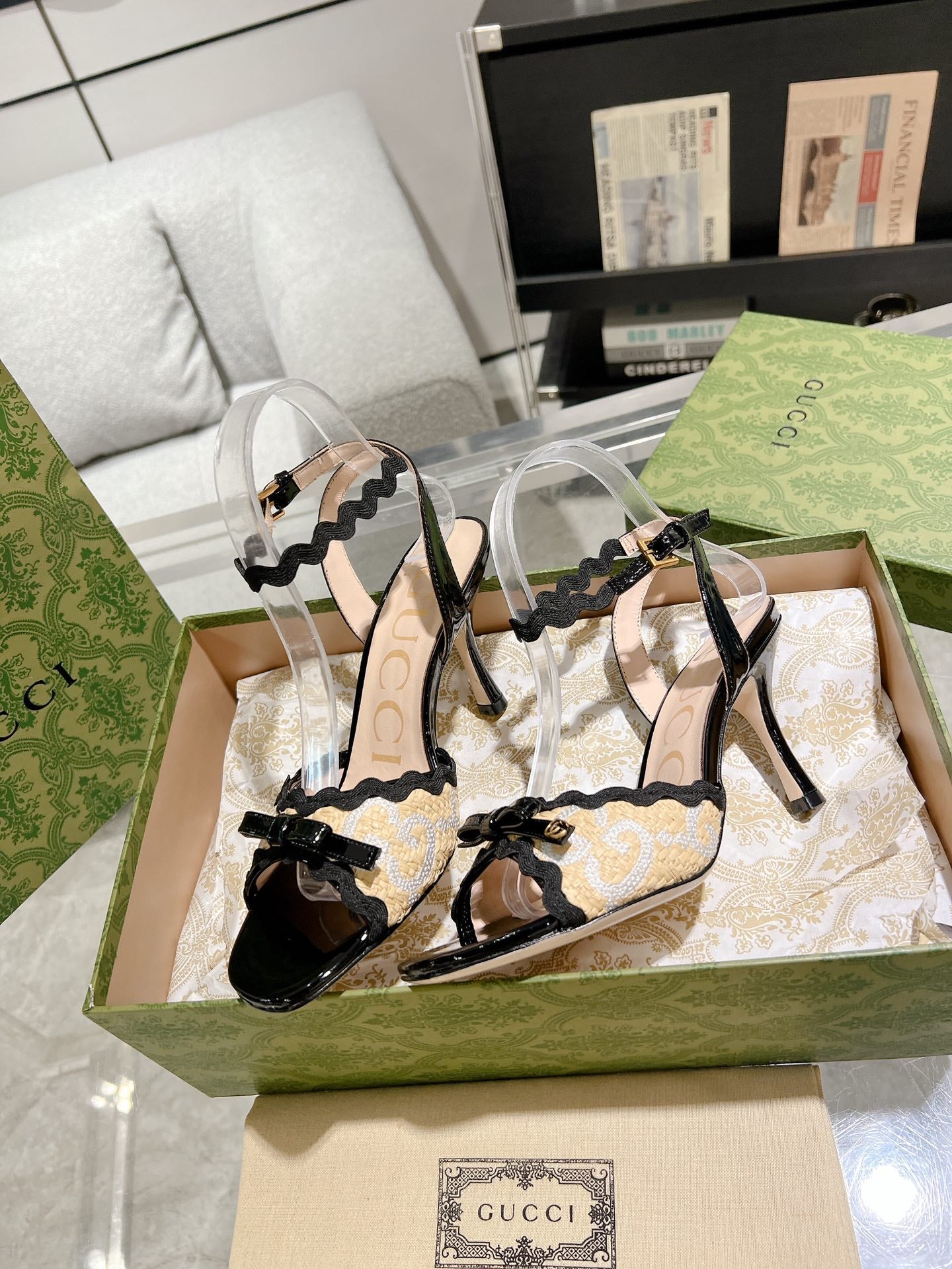 GG HIGH - HEEL SANDAL BLACK FABRIC ATTACH BOW